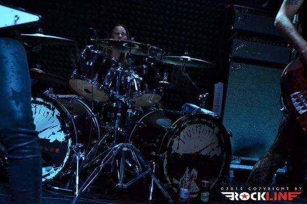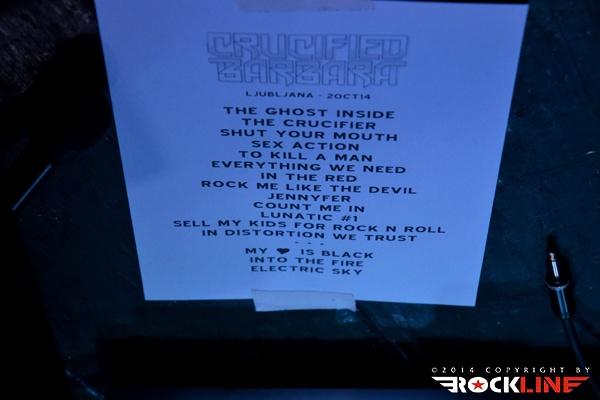 Crucified Barbara so poskrbele, da se je dvorana le nekako zapolnila. Ženski kvartet iz Stockholma je začel ustvarjati konec devetdesetih kot punk skupina, kmalu pa so se punce prelevile v srčne rockerice in zvrsti ostajajo zveste do danes. Pred slabim mesecem so izdale svoj četrti album, In the Red, ki je bil pričakovano rdeča nita večera. Začetek je bil brezkompromisen – šus za šusom, iz komada v komad, brez pavz. Kratek premor za odžejanje so si vzele šele po četrti skladbi in nadaljevale v isti maniri – z minimalno interakcijo, a nič ne de, saj je ta večer namesto njih govorila glasba. Hladen pogled frontmanke Mie Coldheart se ni otoplil in tudi nalezljive nasmeške ritem kitaristke Klare Force, so spremljali srhljivo ledeni pogledi. Ne, 'Barbare' niso še ena ženska skupina, ki na odru prodaja ženske obline; pri njih in za njih govorijo le glasbeni instrumenti. Miin glas na momente spominja na legendarno Doro, trda izvedenka rocka pa je prežeta z različnimi vplivi – od Motörhead in Alice in Chains do velikih imen glam gibanja iz osemdesetih let. Da njihova glasba ne prizanaša, so občutili tudi instrumenti – Miin Gibsonov Flying-V ima zgornji rob že oguljen do lesa, medtem ko je Idin bas še v slabšem stanju. Punce ne razočarajo, niti v distorzirani, niti v akustični verziji! Miin vokal pa je prekleto zasvojljiv – od pravega heavy metal vokala v Crucifierju, do nežnega žametnega glasu v baladah kot je Jennyfer, zdi se kot da zanjo ni ovir. Definitvno koncert, ki bo ostal v srcih vseh obiskovalcev in definitivno skupina, ki so jo želim še videti v živo!