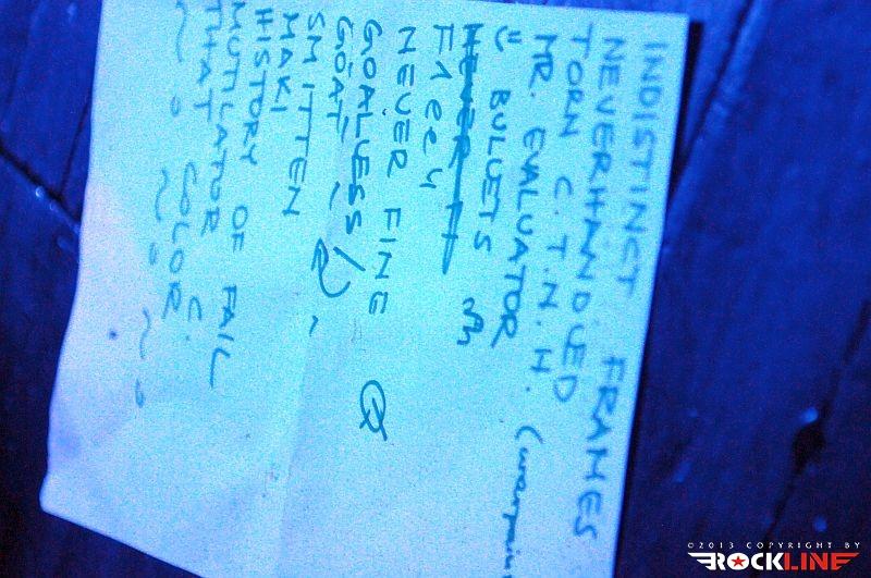 Torn Conclusion That Never Happened je vnovič nekaj novega za moj par ušes, saj skladbe doslej še nisem slišal, z udarnim, jamu, piskajočim mikrofonijam, distorziranosti in odrsko sproščenemu izganjanju notranjih demonov in frustracij predanemu rock'n'rollu pa Anže in Jure dodata privlačnejši podton, ki si med preigravanjem bobnov v slogu leteče menjave izmenjata bas in kitaro ter suvereno zamenjata vlogi. Anže dokaže, da je izjemen kitarist, z razliko od mlačnega nastopa z World::Within pa tokrat izpod prstov niza prave, sočne in ravno prav marinirane rife, Jure pa basu streže na način pravih basistov zvezdniškega kalibra. Pravzaprav je bil koncert poln popolnih neznank, novih ali vsaj meni doslej neznanih stvaritev, ki so bile bližje definiciji krasnih impresij, kolažev zvoka ter popolne odrske izvedbe ljubljanskega tria, v stilu imen, kot so White Stripes, Muse, Queens Of The Stone Age ter cele palete grungerskih polbogov ter glasbenih malikov pa so Dandelioni v celoto vpletala celo pahljačo stilov, nenadnih preobratov, presenečenj ter Monty Pythonovskega humorja, ki ga docela, menim, razumejo le oni sami, publika pa je tu materija, s katero se poigravajo. Barve zadnjega izdelka je tako branil Mr. Evaluator, ki na tnalo obdelovanja vrže vse ocenjevalce, kritike, vse kravatarje, ki količijo našo prihodnost ter pišejo note nič kaj prida svetle prihodnosti. Tako skladbo razumejo vsaj moji možgani, po tem, ko so obenem deležni dvoumne lirike ter izredno trdno zastavljenega kompaktnega udarca bratsko-sestrske naveze ritma in melodije. Smiley Face Bullets in F1ee4, oba precejšna novotarija ali pa na studijskih izdelkih še nearhivirana komada, B-sidea, ravnata teren za nič bolj etablirani Never Fine. Šele s skladbo Goalless Confessions, z brezciljnimi izpovedmi obsedenega White Stripes psihotičnega odmerka skoraj karnevalske melodike in polnokrvnega garažnega rocka obenem. Različica skladbe, ki je prvo izvedbo doživela že s ploščo »Dandeloid« je leta 2013 precej bolj artikulirana in udarna, kljub tem variacijam na prej slišano in znano temo pa so Dandelion Children suvereni krojači svoje usode. Nedovoljenega in svetega Otroci regrata ne priznavajo. Prav tako ne meja improvizacije in preverjanja svojih zmožnosti. »Sky is the limit«, bi dodal, na psihotiki Dandeloida pa ostaja tudi ska različica Skladbe Don't Bother The Goat, ki je bližje popolni zadetosti Intimn Frizurn kot kakšnim Toasters. Sexy! Recikliranje klišejev? Tudi tako bi se lahko temu reklo, zelo spevni singel z zadnje plošče, zelo prefinjena zombiada skladbe Smitten pa daje publiki vnovič malce trdnih tal pod noge. »The roads that I struggle to pass and get by now / The danger the risk no / No fear’s not the factor / Well this time it’s not the same / No this time it’s not that way / Well this time it’s not the same / But you are the most beautiful / Girl I’ve ever seen / The most beautiful,« polno kriči Jure, po gromkem »Oleeee! Oleee! Oleee! Dandelion! Dandelion!« pozdravu dobro ogrete publike pa se z odo Makiju ali namakanju, s skladbo Ne Maki Ga, parada provociranja trnovskih gospa in gospodov, ki so nedavno vlagali peticijo za redukcijo »hrupa« iz njihove soseščine, nadaljuje v multispektralnem slogu izjemnosti. Jure spleza na boks in izvede malce odrske poživitve s pravim zvezdniškim skokom na oder, pomikom na bobne, z ekstazo, pri kateri je publika odmišljena, šov pa toliko bolj doživet in prekleto všečen! History Of Fail preraste nato v poslovilne salve Mutilator Compensatorja, po tem pa fanta in dekle razkrijeta še zadnje odtenke perfekcije svoje »pičkoidne«, vulgarne krasnosti (mimogrede s predzadnjo ploščo izrekajo glasno in jasno tudi sami, da »Dandelion Children so pičke«, ki pa se ne bojijo ničesar!). Zelo metaliziran grungerski ekstrakt krasnega hrupa je pravi balzam za moja, dobre alternative z jajci lačnih ušes! In Dandelioni so več kot le površen obliž na mojo dušo! Kmalu zatem še bis, ki je oddrvel prekmalu in prehitro mimo mene, nato pa je odbila ura za slovo in hvalnice prepotenemu trojčku.