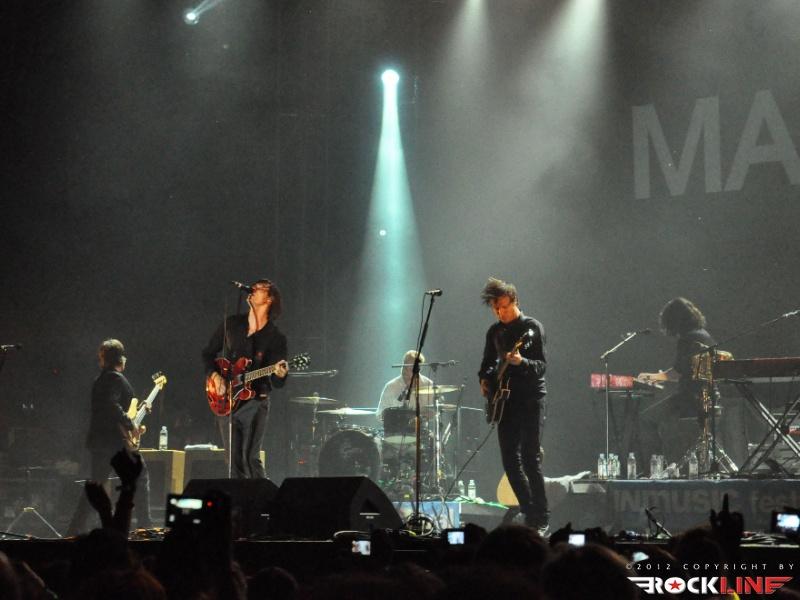 V soboto pa je vloga ''headlinerja'' pripadla škotskim indie matadorjem, skupini Franz Ferdinand. Fantje danes predstavljajo enega vodilnih stebrov sodobne rock'n'roll scene, in to ne samo na Škotskem, temveč tudi po širnem svetu. Poleg zanimivih in zelo različnih osebnih zgodb (odraščanje na bavarskem, igranje v različnih jazz, etno in eksperimentalnih zasedbah, do dela v strežbi, pa kot glasbeni promotor in producent, študij slikarstva, ukvarjanje z lesom,…), jih definira tudi dejstvo, da so pod okriljem imena Franz Ferdinand začeli delovati dokaj pozno napram ostalim primerljivim zasedbam. ''Strokesi'' so bili še najstniki, ''Libertinsi'' prav tako, pri Ferdinandih pa sta jih pevec Alex Kapranos in kitarist Nick McCarthy štela že okoli trideset, bobnar Paul Thompson in basist Roberty Hardy pa okoli petindvajset pomladi. To dejstvo veliko pomeni, saj je že prva plata delovala zelo zrelo, prav nič najstniško. Od tu naprej so se stvari le še stopnjevale. Zadnja, tretja plata 'Ulysses' je naravnost navdušila kritike po vsem svetu prav zaradi zrelega ter prepričljivega glasbenega izrazja, ki zavoljo umetniške celovitosti (sami velikokrat poskrbijo tudi za vizualno plat) in skrbne konceptualne (na zvočni ravni) premišljenosti izgradi povsem lasten svet. Franz Ferdinandi so torej nastali deset let nazaj v Glasgowu in na sceno stopili istega leta kot The Killers (2004), nekje med prvim (The Strokes, The Libertines, Interpol, The Walkmen…) in drugim kitarskim valom punk-rock revivala (Arctic Monkeys, The Kooks,…), ki so ju mediji hitro okitili z oznako ''indie'' (o sami oznaki bomo razpravljali kdaj drugič). Do današnjega dne so izdali tri albume, jeseni pa se obeti že četrti. So dobitniki mnogih nagrad, tudi cenjene Ivor Novello za enostavno naslovljenega prvenca ''Franz Ferdinand''. Poznani so po svoji enkratni melodičnosti in pop strukturiranih skladbah. So zelo poslušljivi, a nimajo kaj dosti skupnega s sterilno sodobno pop produkcijo. Navkljub temu, da se ti hitro zasidrajo pod kožo, so skupina, ki se jo težko naveličaš. Influence se hitro prepozna, a izvirnost na ta način nikakor ne zbledi. Dediščino šestdesetih (The Beatles, The KInks…), Post-Punka in New-Wavea slišijo še nemi, a jim originalnosti kljub temu ne gre očitati. Svojevrstna mešanica vseh naštetih influenc, inteligentnih in duhovitih besedil, Kapranosov globok, prepoznaven vokal, obvladanje inštrumentov in subtilno dodajanje drugih žanrskih primesmi (etno, jazz, elektronika)…tvorijo unikatno glasbeno podobo, ki skupino delajo navkljub pop formi, hitro prepoznavno in kvalitetno. V Zagrebu so že od začetka predstavitve line-upa veljali za osrednjo točko celotnega festivala in tudi večina Slovencev se je odločila oditi v Zagreb le za večer nastopa Franz Ferdinandov. Pričakovati je bilo največjo in najglasnejšo publiko in to se je tudi zares uresničilo (čeprav je bilo obiskovalcev že po defaultu manj kot prejšna leta). Obiskovalci so jim jedli iz rok. Odzvali so se na vsak Kapranosov namig po interakciji s publiko, prepevali refrene ali pa kar cele kitice in nasplošno ustvarili izredno pozitivno energijo, ki je tako ali tako bila prisotna že po koncertu zasedbe Mando Diao. Alfa in omega nastopa je bil vsekakor šarmantni frontman Alex Kapranos, tokrat z malo spremenjeno podobo, ki jo po novem krasijo kratke ''angleške'' brčice (ki zavoljo debeline in oblike že velečejo na ''horseshoe'') ter frizura na gobico. Nastop bi lahko na kratko opisali kot dinamičnega, energičnega, jedrnatega in brez odvečne prtljage. Fantje točno vedo kaj delajo. Profesionalno, a ne hladno. Komunikacije s publiko ni bilo veliko, a ko je bila, je bila učinkovita. Gestikulacija Kapranosa je nadvse minimalna, a ima momente hipnih poskokov, odrezavih dvigov rok. Zasedba zna ''zaružiti'', ko je to potrebno; garažni zvok so učinkovito prenesli tudi na open air prizorišče, a tudi mirnejši toni jim niso neznani.