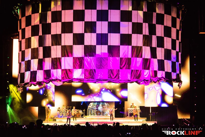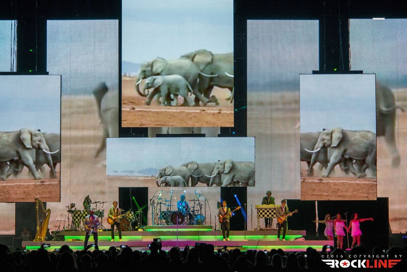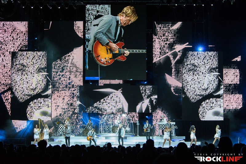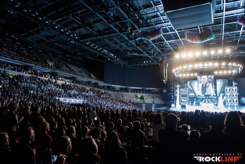 Sama scenografija je bila podobna, kot že pred štirimi leti na Dunaju. Dvanajst velikih tovornjakov, parkiranih pred dvorano, je pričalo o veliki turnejski produkciji, ki pa vseeno ni bilo predimenzionirana in se je lepo vklopila v celostno koncertno podobo. Veliki zasloni v ozadju odra so skrbeli za vizualno spremljavo, motivsko prepleteno z igranim repertoarjem. Med Rhythm of My Heart je občinstvo z navdušenjem pospremilo posnetek Stewartove inavguracije med viteze, ko je pred tremi leti s strani britanskega kraljevega dvora za svoje glasbene zasluge prejel plemiški naziv.