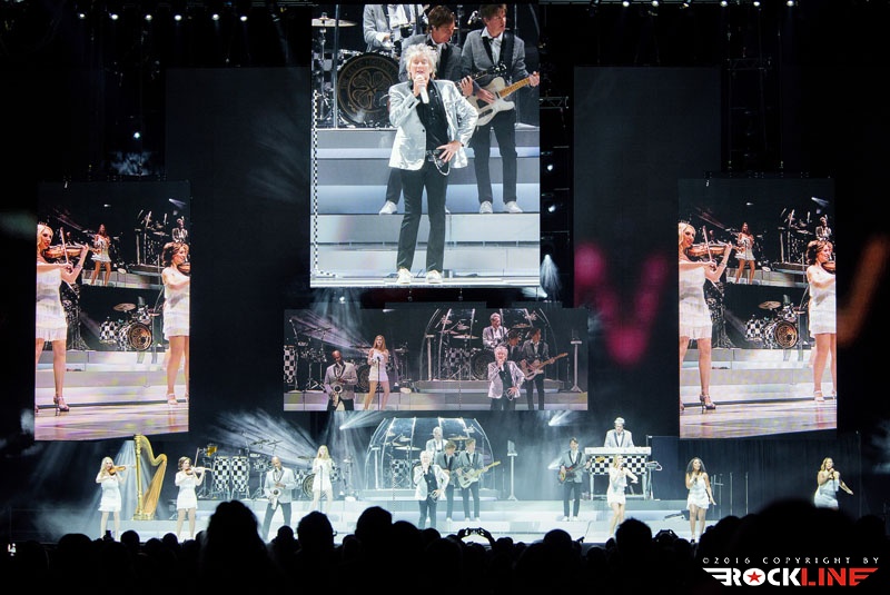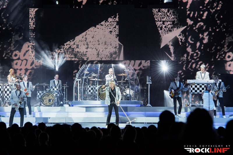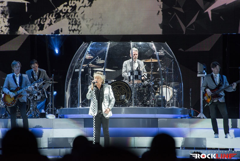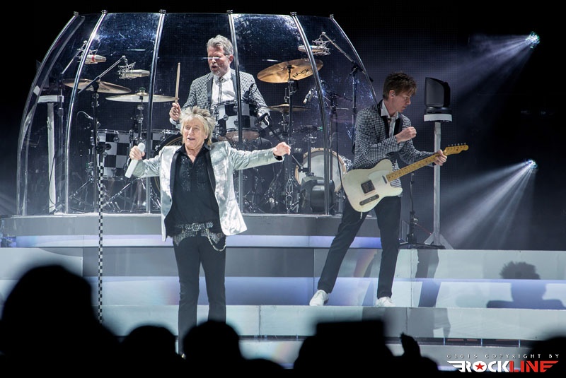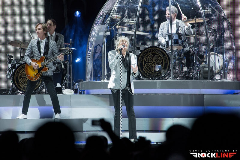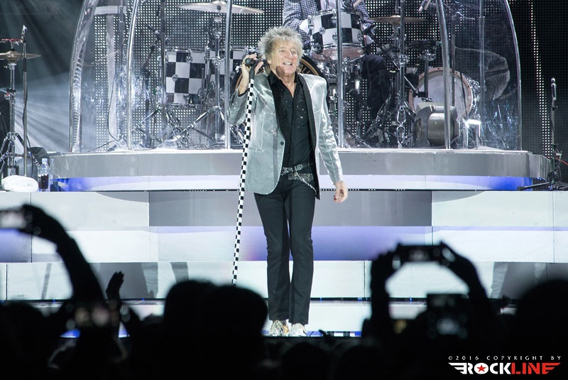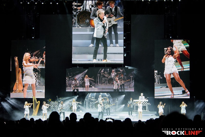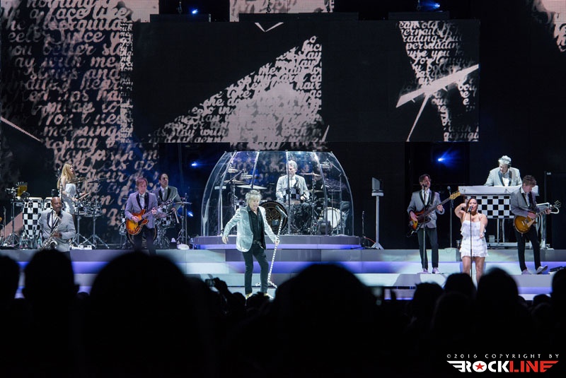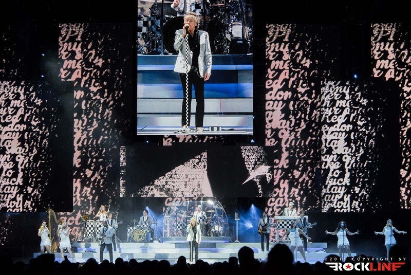 Odrska dinamika je bila izredna! Rodu Stewartu bi človek težko prisodil 73 let. Prepeval je zdaj na eni, zdaj na drugi strani odra in ves čas pletel stik s publiko, ki jo je tekom koncerta večkrat ogovoril. Vzdušja ni pokvaril niti prismoda v prvih vrstah, ki je stalno vpil Stewartovo ime, tako da si ga je glasbenik med enim od premorov privoščil z besedami: »Tiho bodi že enkrat in se deri kakšno drugo ime, denimo Elton John«. Sosledje dogodkov je skrbno zrežirano. Stewart je imel med krajšimi inštrumentalnimi pasažami, ko so v ospredje stopili zdaj bobni, drugič harfa in saksofon, dovolj časa, da je v zaodrju prišel do sape in si nadel nov kos oblačila. Tudi z ekstravagantnimi oblačili se glamur drži na visoki ravni!