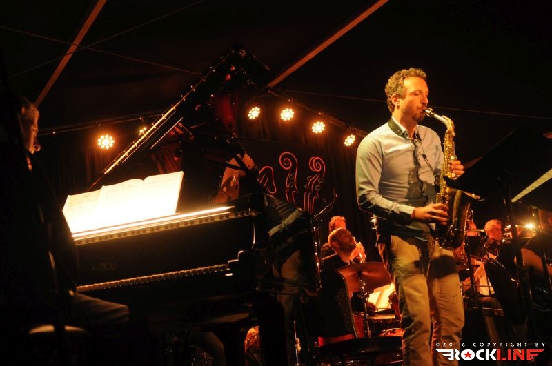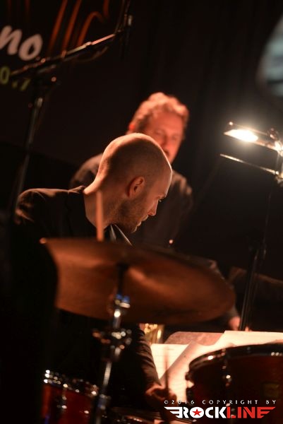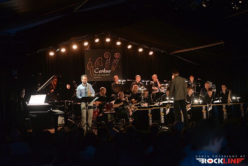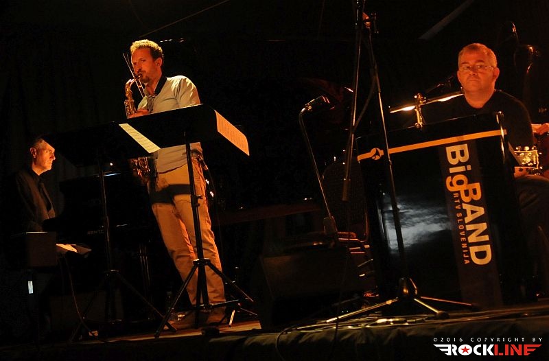 Letošnji program je uvodoma »nastavil« nekoliko blažjo, to je lažje osvojljivo glasbeno izkustvo. Ta trik je večkrat preizkušen in velja za siceršnjo ustaljeno metodo progama prvega dne jazz festivala v Cerknem. »Ogrevanje« v živopisan program letošnje izdaje festivala je pripadlo tako našemu Big Band RTV Slovenija, pod vodstvom dirigentskih gibov Lenarta Krečiča, ki sta se mu pridružila posebna gosta. Slovenski saksofonist Jaka Kopač in avstrijski bobnar Reinhold Schmölzer. Da to je ekskluziva. Neponovljiva in zrežirana le za ta festival. Obe zvezdi večera Schmölzer in Kopač, sta pripravila celotni repertoar večera igri za orkester. Zlasti Schmölzer ima že lep sveženj izkušenj v tej smeri, obe svoji plošči je namreč posnel ob sodelovanju z orkestrom. Predstava se je pričela z izvedbo Kopačeve skladbe Thunder, ki jo najdemo na njegovem drugem studijskem albumu »Present Thoughts«. Že ta je obelodanila na sotrk modernih do avant jazzovskih prijemov s klasično jazzovsko filozofijo, kar je šlo tudi pričakovati že v sami iztočnici tega posebnega »pajdašenja« glasbenikov na odru. Kopačeva glasba je dobila novo dimenzijo, vložek njegovih saksofonskih vibracij, se je v zgoščenem jedru plejade sodelujočih nekoliko raztopil, pravzaprav pa je to tudi bistvo poslanice tega enkratnega sodelovanja. Eno izmed vrhuncev predstave je zabeležila dvajsetminutna, epsko in širokopotezno razgibana ter zapeljana variacija Radiohead skladbe You And Whose Army?, sicer adaptacija v režiji Schmölzerja, kjer so se najintenzivneje stapljali vzorci prej opisanih glasbenih elementov in dostavili posebno ambientalno sladostrastje, pavšalno označeno, kot simfo-prog-jazz ep. Skladba je sama po sebi dostavljala v svoji predrugačeni podobi gotovo enega najbolj zapomnljivih trenutkov predstave in atrakcijo posebne sorte v repertoarju, ne le v režiji Big Banda, Schmölzerja in Kopača, pač pa kar celotnega prvega dne, pa tudi festivala. V tej skladbi se je petih minutah razvoja dogodkov "prebudil" tudi naš kitarski heroj Primož Grašič in v svoji ustaljeni maniri enkratno sofisticirane finomehanike ročnih spretnosti, pretanjeno razgibal prste na svoji polakustični Yamaha kitari. Naj ne bom pristranski. Kar nekaj drugih »herojev« Big Banda je s svojimi instrumenti oplemenitilo razvoj dogodkov z impro točkami, ekipa pa je med drugim izvedla tudi Kopačevo Twin Brothers. Skratka. Nastop je minil hipoma. Prava mera poslušljivega božanja ušes in raziskujočih glasbenih posebnosti. Vseskozi dražljivo in navdušujoče.