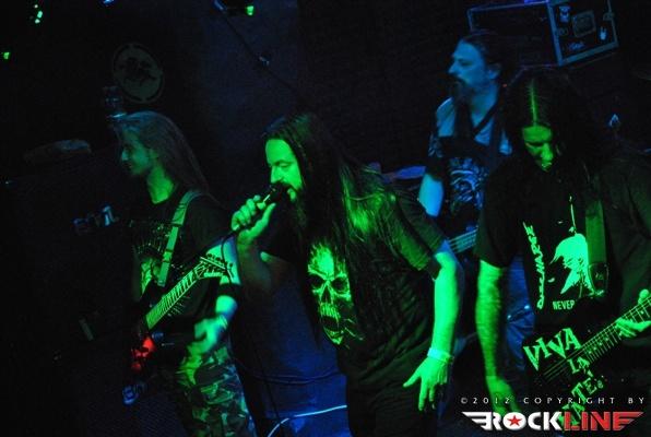 »Use the Force« so rekli Onslaught in se odločili, da bodo na trenutni turneji sploh prvič v celoti igrali kultno plošče The Force (1986), ki po mojem mnenju skupaj s Xentrix – For Whose Advantage in Sabbat – Dreaweaver predstavlja vrhunec thrash ustvarjanja z Otoka. Onslaught so pri nas nazadnje nastopili leta 2009 na Paranoid Open Air festivalu, kar je vokalistu Syju Keelerju očitno padlo iz spomina in se je spomnil le njihovega nastopa na Metalcampu 2008, tokrat pa je bil njihov koncert še toliko bolj vabljiv zaradi dejstva, da je bilo moč v celoti slišati Silo britanskega thrasha. Onslaught je lani zapustil originalni bobnar Steve Grice, a so se fantje hitro okrepili z Michaelom Hourihanom (Desecration, ex-Extreme Noise Terror), ki je poskrbel za konkretno tresenje osamele nedeljske Metelkove. Onslaught so naše bobniče za začetek pobožali s po dvema rušilcema z albumov Killing Peace (2007) ter Sounds of Violence (2011), Let There Be Death pa je napovedal povratek v leto 1986. Veterani so dokazali, da se jih leta niso dotaknila; Sy je kričal kot za stavo, originalni kitarist Nige Rockett pa z levo roko serviral riffažo, ki po petindvajsetih letih še vedno zveni sveže in ubijalsko. Bend se je v The Force zagnal energično in v gibanje spravil napolnjen Channel Zero, publika pa je klasike požirala z velikim veseljem in se Keelerju pridružili pri rohnenju skozi thrash himne Metal Forces, Contract in Blood ter Thrash 'til the Death. Diabolični riffi so leteli z vseh strani, odlične solaže prav tako, agresivni in vreščeči vokal fantastičnega frontmana Sy Keelerja pa je zaključil s Power From Hell ter v dodatku še z bombama Angels of Death in Thermonuclear Devastation. 666% Pure Thrash!