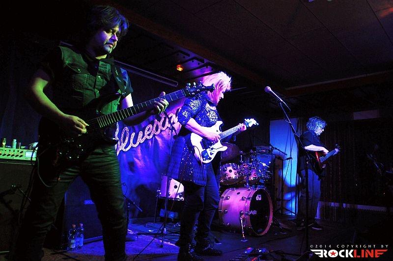 Jennifer Batten (kitara), Stu Hamm (bas kitara) in Chad Wackermann (bobni). Greh bi bil da se spregleda taka koncertna poslastica. Jeffiner Batten je v Bluesiani nastopila že 29.11.2013, natanko na svoj 56. rojstni dan. Takrat so ji spekli orjaško torto v obliki Fender Stratocaster kitare in z nj se je mastila cela Bluesiana še dolgo v noč po njenem koncertu. Jenny je nastopala tudi že v Ljubljani, v sklopu kitarske klinike, prav tako pa nas je obiskal že tudi Stu Hamm, v sklopu njegove bas kitarske klinike leta 2008 v Orto baru in kot del spremljevalne zasedbe Joea Satrianija, kjer smo ga gledali junija 2008 na odrih Codroipa pri Vidmu v Italiji. In Chad Wackermann? Možakar ki se je vpisal na albume in koncertne turneje Franka Zappe, Alana Holdswortha, Alberta Leeja, Steve Vaia, Andyja Summersa (The Police) , če jih naštejemo le nekaj, pa to pot v BLuesano ni prispel. Namesto njega je nekaj minut preko osme v gosjem redu stopal za Battenovo in Hammom proti odru možakar kratke lično urejene pričeske, vsekakor mišičast in kitast, po rasti skoraj bolj širok, kot visok. To ni bil nihče drug kot britanski bobnar Greg Blundell. Gre za še enega vrhunskega bobnarja, vražje izpiljene in izpopolnjene tehnike, ki je v karieri sodeloval z Davidom Crossem (King Crimson) in bobna za skupini Frost* ter Pendragon, pred kratkim pa je prejel klic samega Stevena Wilsona, če mu lahko vskoči pomagat na turnejo v sklopu promocije njegovega novega albuma »Hand Cannot Erase«, saj ima njegov bobnar Marco Minnemann v maju 2015 druge zadolžitve in ne bo mogel vztrajati v vlogi bobnarja do konca Wilsonove turneje. Skratka. Blundell je torej izjemno čislan bobnar. Vrhunski in vsestranski virtouz. Nikakor pa ne smemo obiti še četrtega glasbenika, ki nastopil tega večera s trojico. Gre za odličnega italijanskega kitarista Nazzarena Zacconija, ki je Jennifer Batten pomagal na odru že pred dvema letoma, ko je ta nastopila v Bluesiani.