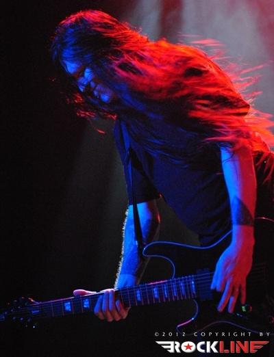 Soen so stopili na oder malo preko devete. Bend, v katerem sta osnovni figuri Opeth bobnar Martin Lopez in eden najboljših basistov metala Steve DIGiorgio, ki pa znova ni odšel na turnejo, pač pa je skupina našla zanj več kot dostojno zamenjavo (imena žal nisem uspel nikjer izbrskati), vodena s karizmatičnim likom na mestu pevca, Švedom Joelom Ekelöfom, medtem ko za rifovski zid skrbi kitarist Kim Platbazdis, je nova cerebralno progresivna zasedba, ledeno hladne in otožne atmosfere. Vokalne in melodične linije, ki jih ubira Joel, hote ali nehote vlečejo na Tool, vsa reč pa lahko občasno zadiši po aranžerskih rešitvah novejših Opeth. Z izdajo prvenca » Cognitive« zasedba ne izumlja tople vode. Je pa definitivno dejstvo to, da je Soen glasba izvedena v živo, veliko bolj polna in učinkuje še bolj grabežljivo, kot studijski original. Že sama odrska koreografija Joela (seveda v naprej naštudirana), posrka in priklene poslušalca nase, medtem ko je pravi užitek gledati kaj počne ritem sekcija v skupini. Slednja je temelj, ki prinaša glasbene zanimivosti skupine, medtem ko je kitara definitivno najšibkejši člen vse zadeve.