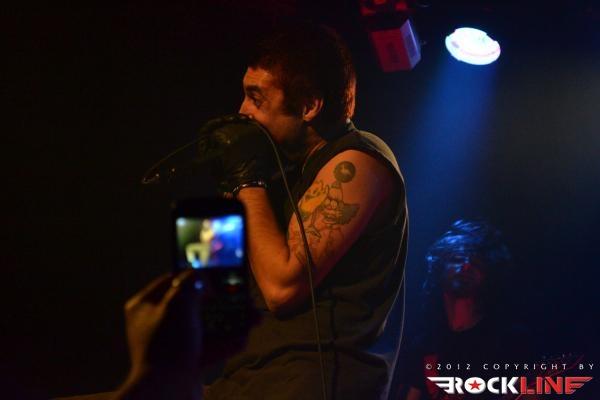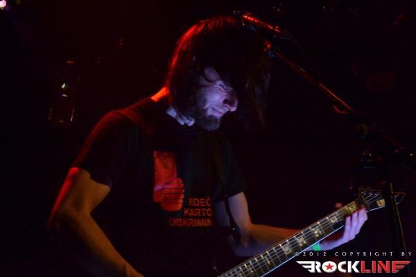 Odgovore na to vprašanje je bilo potrebno poiskati kar v praksi, zato se je skupini sicer redkih pogumnežev, ki so se drznili zoperstavljati ljubljanskemu večernemu hladu, pridružila tudi naša ekipa. Četrtkovo vzdušje je bilo na meji med depresijo in recesijsko samomorilnostjo, zato je bila novica, da je koncert brezplačen, zelo dobrodošla. Okoli enajste ure se je v Gali Hali nabralo že kar precej radovednežev, že na prvi pogled pa je bilo jasno, da podpornikov iz nekdaj matičnih zasedb (mislim predvsem na člane skupine Leaf Fat) ni manjkalo. Morriconejev izjemni soprispevek legendarnemu filmu, vesternu vseh vesternov The Good, The Bad, The Ugly, v katerem je briljiral nesmrtni Clint Eastwood, je prekinil serijo metalskih poskočnic, ki so subtilno vele iz zvočnikov. Sedaj gre zares! »Mi smo Dead Dildo Drome in tu smo zato, da vas nežno posilimo!« je krasna uvertura v nekaj, kar bi bil lahko večer razdevičenja za slehernega glasbe že(l)jnega nadobudnega metalca! Za bobne sede kratkolasi Enej Kuplenik, kitari si oprtata zdaj dolgolasi Damir Juretič (slednji je še pred časom brusil štiri strune v zasedbi Language Of Thought Hypothesis) in z ruto vedno opremljeni Andraž Perko a.k.a. Andy (nekdanji God Scardovec), bas poprime Žiga Jerič, kot zadnji pa na oder v kopalnem plašču pride Robert Šercer – Šero, nekdaj prvo milozvočno grlo ljubljanskih poskočnežev Leaf Fat, po parih taktih bobnarjevega ritmičnega imperativa pa v četrtkov večer penetrirajo zvoki prve avtorske skladbe z albuma, izjemnega komada Black Mark.