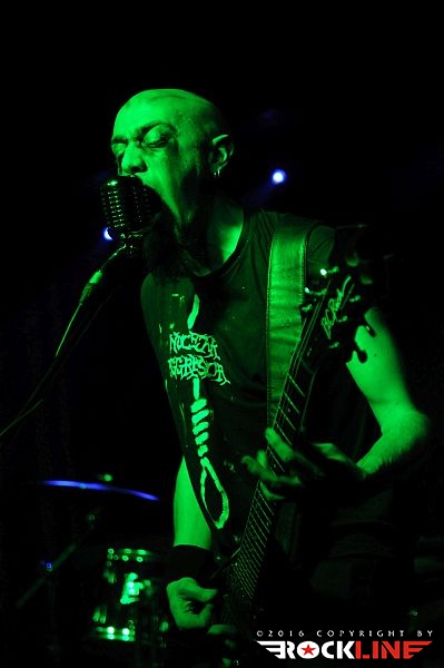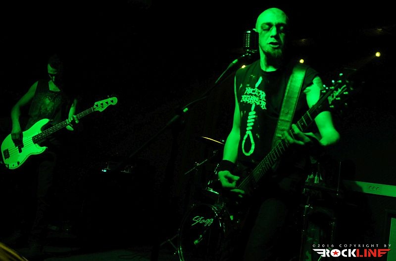 Za finale pa še Nuclear Aggressor. Trio, ki je bil nekdaj tudi kvartet, je bil prav tako ustanovljen leta 2010. Torej smo dobili tega večera vse tri skupine z enako letnico rojstva. Bend zastopajo slovenski bobnar Luka Laurenti, ki je prej bobnal za zasedbo Lintver, pa povsem novi basist zasedbe z vzdevkom Sioba ter vodja, to je pevec in kitarist, Hellvis (orig. Elvis Masut), ki že nekaj časa hodi naokoli s povsem pobrito pričesko. Slednji se ni pozabil niti teatralno namazati po obrazu, tako da je dajal vtis zombija. Nuclear Aggressor so vnesli nekaj "glasbenih fantazij" po vzoru starošolske zapuščine nemških tevtonskih thrash metal zasedb, na čelu s Kreator. Tudi histerični, a prodorni in pečatni vokal razdivjanega in razuzdanega Hellvisa je občasno spomnil na Petrozzo. Gre za bend, ki je izredno dobro uglašen, uigran in ki ima tudi nekaj več izkušenj, saj se lahko pohvali tudi z izdatnejšo konsistenco lastnih avtorskih izdaj. Tako je, po seriji EPjev in v letu 2013 izdanem studijskem prvencu »Condemned To Rot«, v predlanskem letu izšel še drugi dolgometražni dosežek skupine z naslovom »Slow Dismemberment«. Torej brez potresnih sunkov v smislu glasbene inovativnosti, vendar pa tako, kot obe skupini prej, z izredno srčnostjo, strogim fokusom ter zavzetostjo! Bend je vseskozi podžigala tudi mala skupinica "prekopicevajočih se "zverinic", točneje italijanskih metalskih zanesenjakov ter simpatizerjev ekstremne glasbe, kar je bilo na moč dobrodošlo, saj je odganjalo tisti nevšečni občutek, da je klub pač ostal tega večera povsem prazen in pozabjen.