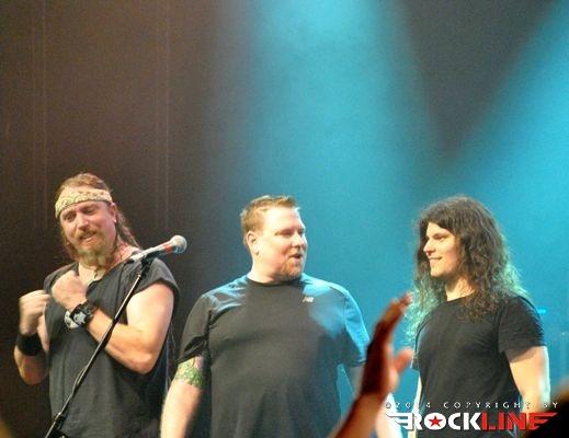 Kot prva je na oder stopila kultna kanadska tehnična death metal zasedba Gorguts, ki je bila vsaj tolikšen razloga za obisk koncerta kot nosilci večera. In Gorguts so visoka pričakovanja več kot upravičili! Kanadski veterani pod vodstvom neustavljivega Luca Lemaya so v devetdesetih drug za drugo izdajali plošče, ki danes veljajo za temelje tehničnega, celo avantgardnega death metala, leta 2005 pa po samomoru bobnarja Stevea MacDonalda z delovanjem prenehali. A njihov pokoj ni trajal prav dolgo, Lemay je kolesja zasedbe kmalu znova pognal, neustavljiva Gorguts mašina pa je lani izdala odličen, neverjetno močan come-back album (po prepričljivosti vsekakor nekje na nivoju Carcass come-backa s Surgical Steel) Colored Sands. Kanadčani so sicer še pred izdajo novega albuma pred dvema letoma nastopili na Metalcampu, a kljub prepričljivemu nastopu ostali nekako spregledani. Po tokratnem se to gotovo ne bo zgodilo. Gorguts so že lepo napolnjeno dvorano v prvi polovici dobre ure dolgega nastopa (končno za skupino takega renomeja kljub statusu predskupine primerno odmerjen čas!) pozdravili s potresnimi premiki albuma Colored Sands. Že čisto prvi toni so dali vedeti, da nas ne čaka nič drugega kot zvok mletja kosti s strani eksperimentalno naravnanega death metala kot se zagre; psihotični Lemayevi rifi, ki v svoji drzni fazi dosegajo skorajda psihedelične trenutke nezemeljske disonance, atonalne solaže, ki svoj navdih črpajo iz del klasičnih skladateljev kot so Šostakovič, Penderecki in Bartok, brutalni vokali in nečloveško zahtevno bobanje, ki pa ga je fenomenalni Patrice Hamelin (Quo Vadis, ex-Martyr, Cephalic Carnage in Beneath the Massacre) opravil s peresno lahkostjo so dvorano zasuli kot pesek. Kot pesek, ki je glavna tema Colored Sands, kot tibetanske mandale, čudovite geometrične kreaciji, ki jih budistični menihi ustvarjajo s peskom. In jih, ko so končane, ritualno uničijo. Če budistična doktrina to vidi kot simbol za prehod iz materialnega v spiritualno življenje, je lahko to tudi vzporednica za Gorguts, ki s svojimi do potankosti dodelanimi elementi presegajo zgolj materialno bit glasbe. Gorguts so svoj nastop zaključili s trojčkom rušilnih klasik Nostalgia, Inverted in Obscura in čeprav je res, da njihova vizija glasbe za ušesa, živčne končiče in možgane ni ravno najlažji zalogaj, ja bila to kar so pokazali v Šiški totalna perfekcija tehničnega death metala.