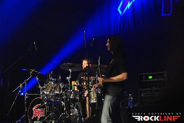 Ne spomnim se kdaj je na naših tleh koncert ekstremnega metala nazadnje doživel tako dober obisk, kar je le dokaz za to, kako mogočno, nesmrtno zapuščino je za seboj pustil Chuck Schuldiner po svoji prezgodnji smrti leta 2001. Nekoliko mlajše generacije nikoli nis(m)o imele priložnosti videti Death v živo v svoji edini pravi obliki zato je DTA edina možnost, da podoživimo veličino glasbenega genija tudi v živo. Tokratna inkarnacija projekta vključuje tri četrtine postave, ki je s Chuckom posnela prelomni albuma Human (1991), s katerim so Death resnično začeli svojo pot progresivnega death metala – Steve DiGiorgio (bas; Testament, Sadus), Paul Masvidal (kitara; Cynic) in Sean Reinert (bobni; Cynic), v Chuckove velikanske čevlje pa je spoštljivo stopil Max Phelps (Cynic, Exist). Postavi primerno so nas pozdravili z uvodnim Human rušilcem Flattening of Emotions, ki je Death pred 23. leti v novi luči, ki je zaznamovala pot skupine vse do njenega konca – kompleksnejše strukture, napredni prijemi, raznoliki ritmi, briljantne melodije in bolj premišljena socialno kritična ter introspektivna besedila. Flattening of Emotions je glasno, energično in zvesto publiko zavil v oblak misli paranoidnega shizofrenika, pokazal pa je tudi prve prednosti in slabosti benda. Fantastično se je namreč izkazal prav Phelps, ki je imel gotovo najtežjo vlogo, a jo je z odličnim igranjem in še boljšim petjem (z nekaj res vrhunsko izvedenimi kriki) dobro opravil, povrh tega pa njegova silhueta z BC Rich Stealth kitaro na trenutke izgledala srhljivo podobna Chucku. Ob pomoči energičnega DiGiorgia (obutega v papuče, hehe), čigar bas linije in vlečenje strun po fretless basu so znova dvigale kocine sta s Phelpsom dokaj uspešno zakrivala preštevilne fuše Cynic dvojca. Masvidala oz. njegovo kitaro so sicer pestile očitne tehnične težave (težavno je bilo gledati tudi njegovo skakanje po odru), popolnoma pa je razočaral sicer eno večjih bobnarskih imen v metalu. Vidno porejeni Reinert je za bobni deloval kot stara mama in večino delov odigral povsem brez energije in občutno počasneje kot v originalu.