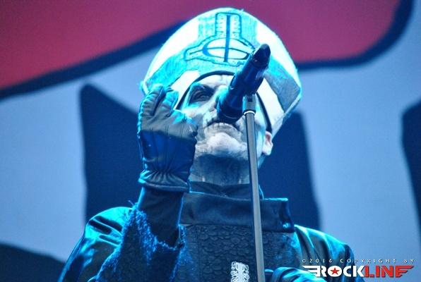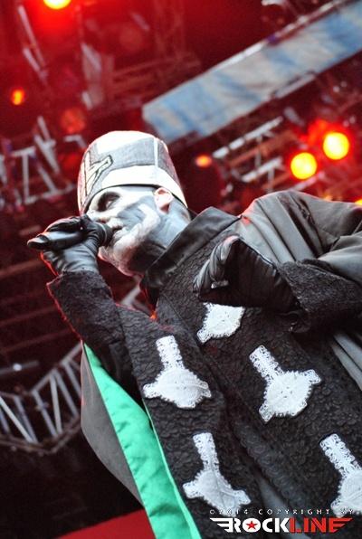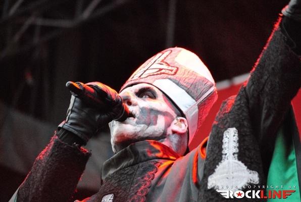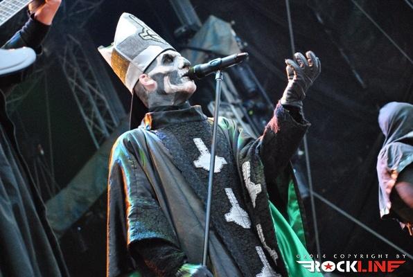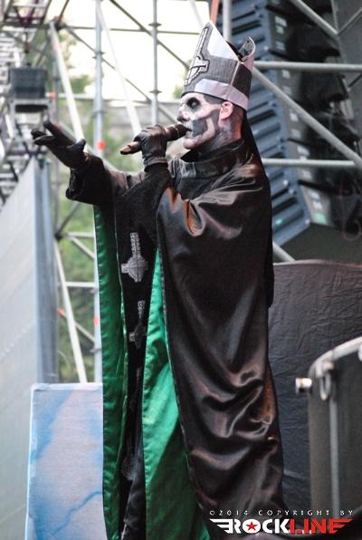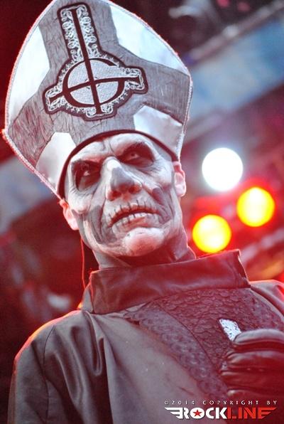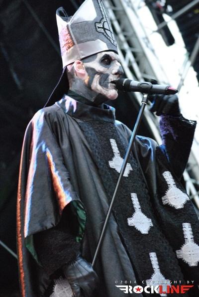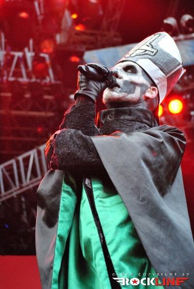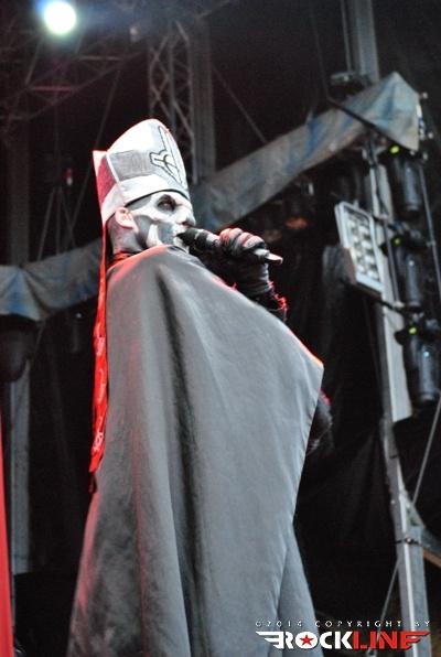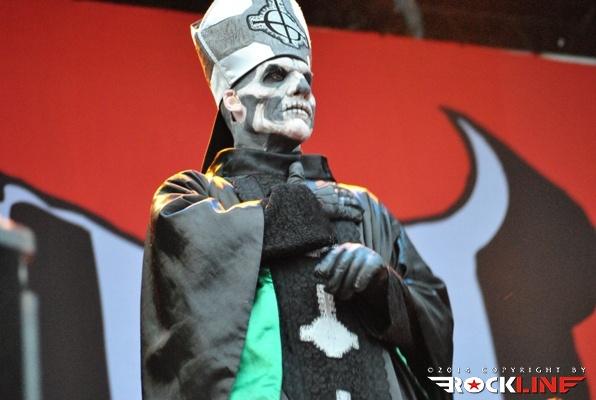Ob pol osmih so zbrano kongregacijo v orgijo satanističnega heavy metala popeljali švedski zlobneži Ghost. Ob zvokih zlobnega simfoničnega intra je na oder prikorakal vseh pet Nameless Ghoul-ov, za njimi pa še poglavar cerkve Ghost in zvezda odra Papa Emeritus II, ki je takoj požel bučen aplavz in žvižge odobravanja. Ghost so nas za začetek pahnili v leto ena, v leto rojstva Antikrista, Year Zero in Kalemegdan zavili v gosto, zloveščo atmosfero retro heavy metala oz. rocka prepredenega s hudičevskimi, okultnimi temami. Te podkrepi odrska prezenca inštrumentalnih duhov, še bolj pa papeška avdienca Papa Emeritusa II, ki s sladko zavajajočim glasom in teatralnimi kretnjami ukrade prav vso pozornosti. Srbski publiki se je še toliko bolj prikupil zaradi številnih nagovorov v srbščini. Žal je bil vokal sicer precej slabo ozvočen in bogokletna besedila niso prišla tako do izraza kot sicer, se je pa izkazala inštrumentalna peterka, predvsem kitarista z preprostimi, a močnimi rifi ter bobnar, ki je iz minimalnega seta bobnov izzval res ogromno. Ghost so doživeli precej topel odziv, kar je za predskupino Iron Maiden prej izjema kot pravilo, res zanimivo pa je videti, da je Švedom Satana, Luciferja in zlo uspelo tako močno popularizirati, da staro in mlado prepeva verze kot so »Lucifer/We Are Here/For Your Praise/Evil One« in podobne. Ghost so se od Kalemegdana, ki se je počasi že utapljal v temo poslovili s hitom albuma Infestissumam Monstrance Clock. Papa Emeritus II za papeža!