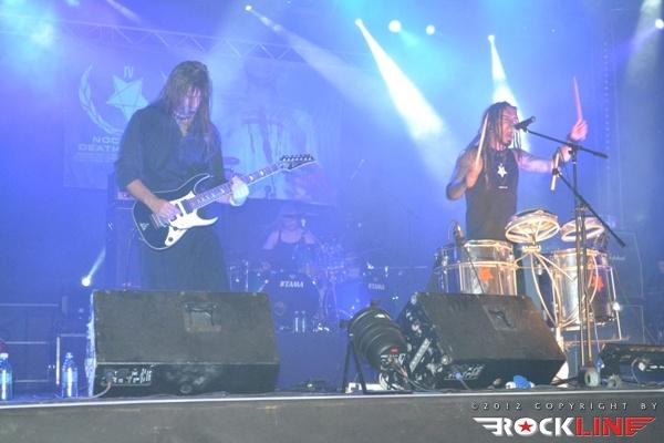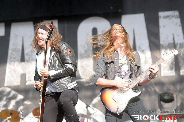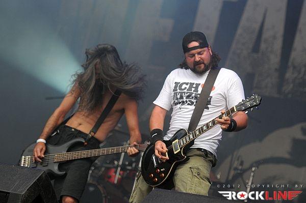 A je po drugi plati pre-Sodom uvertura postregla z lepo bero žanrske raznolikosti, festivalski »mir« pa je ob četrti popoldan presekalo hrumenje nemških thrash metal revitalistov Purify, po nekajletnem premoru znova delujočih zagledancev v izročilo ameriškega Bay Area gibanja, začenši s staro šolo Exodus ali/in Forbidden, nekaj umazanije rock n' roll kotaljenja, pa so Purify podedovali tudi od New Yorških Overkill. A v nemškem sozvočju. Torej generična in manj zanimiva otvoritev zadnjega dne. Hedienvolk, nizozemski folk metalci, so prignali pred oder znova konkretno število metalskih razposajencev, kar je še zadnjič na festivalu potrdilo splošno folk metal manijo, ki trenutno vlada na svetovni metal sceni. Bend, ki se je afirmiral na prizorišču dokončno s tretjim albumom leta 2010 naslovljenim kot »Uit oude grond« (»From old soil«), seveda skrbi za balansiranje klasičnih gradnikov metal glasbe s folk instrumenti, kot je vključevanje aranžmajev za mandolino in violino. Nova žurka, suveren nastop, drugače pač ne gre. Zasedba je zverzirana dovolj, saj kljubuje na prizorišču že celo dekado. Vendar pa je v tem času že presedalo spoznanje umetnega forsiranja folk metal skupin, ki dobivajo zaradi popularnosti žanra avtomatično prednost pred avtorsko m,nogo bolj zrelimi zasedbami, vrata se jim brez težav odpirajo na stežaj, vprašanje pa je koliko kvalitete in avtentičnosti lahko take skupne danes sploh še ponudijo, recimo raje proizvedejo, saj so si v vsej svoji obči abundanci podobne kot jajce jajcu.