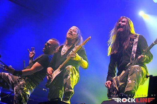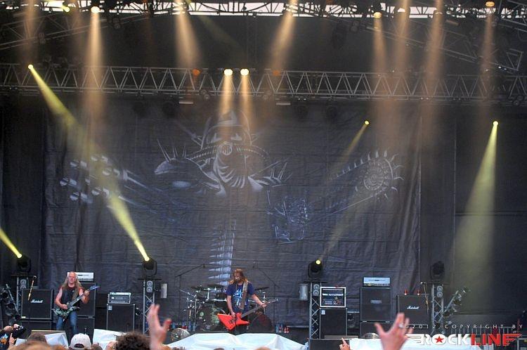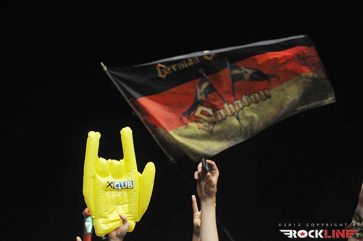 Sabaton, ki so v maju letos izdali novi album »Carolus Rex«, so prestali veliko spremembo! V ekipi so zamenjali kar tri člane ter prešli iz seksteta v kvintet. V tej novi formaciji so, do prihoda na Metal Camp, odigrali kakih 50 koncertov po svetu in kot je v enem od nagovorov povzel pevec Joakim Broden, niti en oboževalec skupine ni pokazal srednjega prsta skupini med katerimkoli izmed nastopov skupine v prenovljeni postav.i. Tako je izrekel tudi Metal Campu posebno zahvalo in priznanje za vso izkazano podporo in lojalnost zvestih oboževalcev. Pozicija na mestu headlinerja je potrdila, da se Sabaton držijo suvereno v šopku najbolj vročih metalskih skupin tudi v letu 2012 in da tudi po prevetritvi postave zadržujejo kredibilnost.