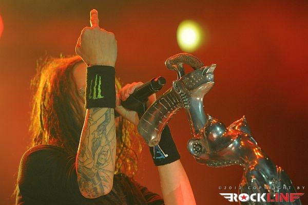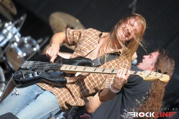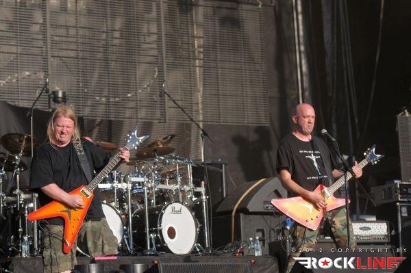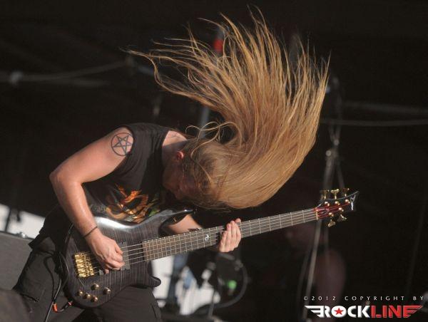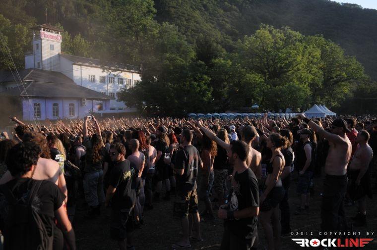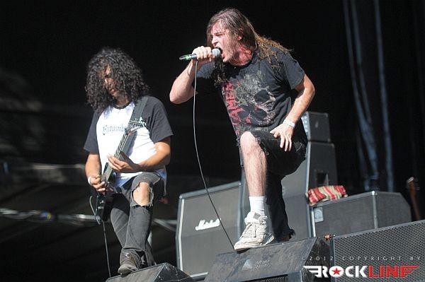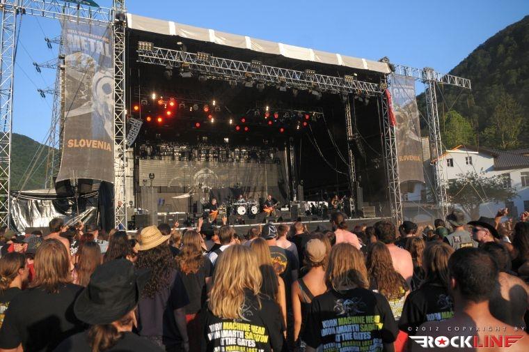 Neodložljive obveze v ljubljanski domačiji dopoldneva v tem dnevu, so botrovale zamudi avtorja tega prispevka in slovenski death metalski kvartet Doomed, ki ga vodi vokalist Mraz (ex-Mora), to pot ni utegnil ujeti na odru. Sonce se je pošteno uprlo v oder, ko so na njem stali ameriški thrash metal reviitalisti, lahko rečemo celo old school revitalisti, z vzporednicami, ki kopljejo celo po zapuščini speed metalskih skupin, Warbringer. Stari znanci ljubljanskih nastopov torej na relaciji Orto Bar – Gala hala. Zasedba, ki je sicer med metalci v Sloveniji dodobra spoznana in sprejeta, pred odrom ni uspela strniti vrst, koncerta ni spremljalo niti 1000 glav, vendar pa je skupina impresionirala s svojo eksplozivnostjo! Kvintet ki ga tvorijo brata kitarist John in basist Andy Laux, novo pečena člana skupine bobnar Carlos Cruz in Andrew Bennett ter vokalist John Kevill, so tudi na tem nastopu predstavljali aktualni album »World Torn Asunder« (2011). Po Evropski turneji v lanski jeseni, kjer so nastopili znova tudi v Ljubljani (skupno drugič), so fantje izvedli uspešno severnoameriško turnejo na skupni co-headlinerski turneji Symphony X in Iced Earth zato dinamita, izredne samozavesti skupini na odru nikakor ne primanjkuje. Starošolska konfekcija kombinacije opasanih saržerjev z naboji, spandexa, jeansa z »visokimi puma« in popoln vojni marš tet juriš preko vnetljivih riffov prežetih s poezijo vojne pridige, ki se drži skupine strnjena v novih skladbah Living Weapon, Shattered Like Glass, Wake Up… Destroy, ter skladbah prvih dveh albumov Severd Reality, Shoot To Kill, Total War, Living In A Whirlwind ter Cobat Shock, je sama po sebi silila telesa v divji mosh pit! Pristno thrash metalsko bombardiranje, ni dopuščalo globokega vdiha, ne izdiha! Škoda le da prostor pred odrom ni bil bolj poln.
