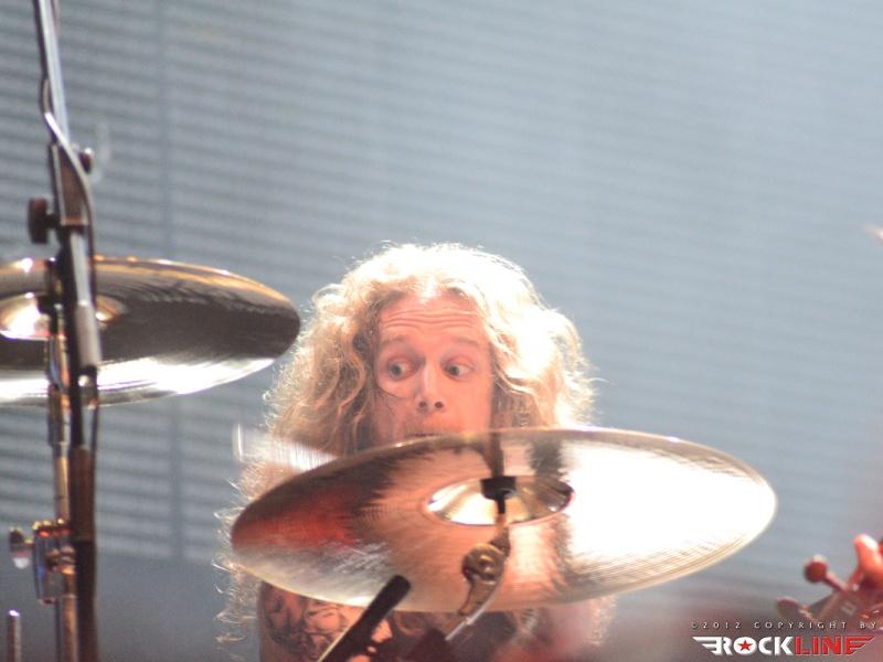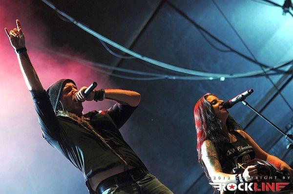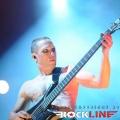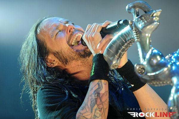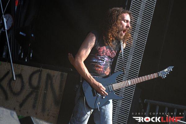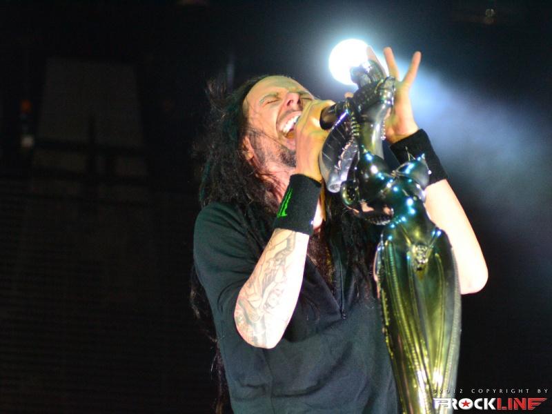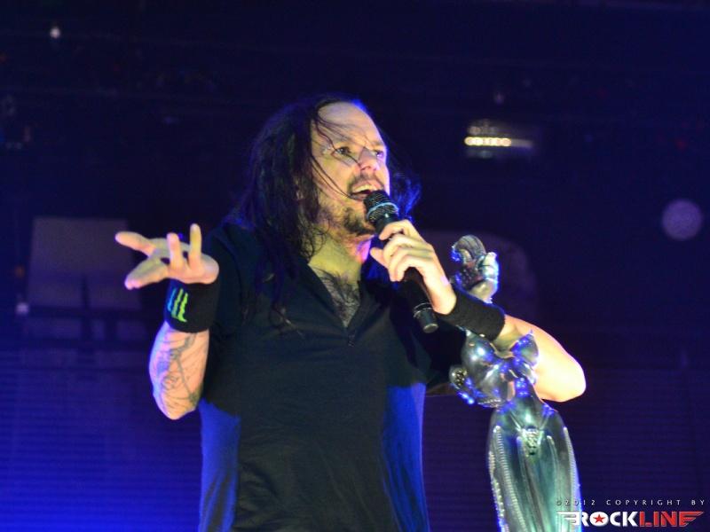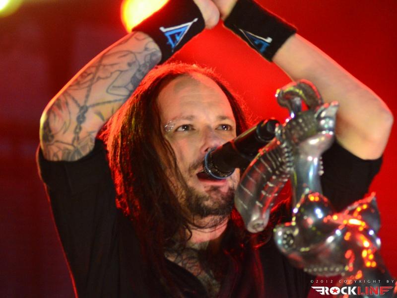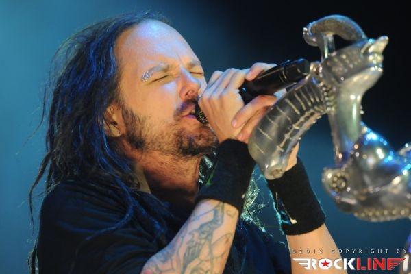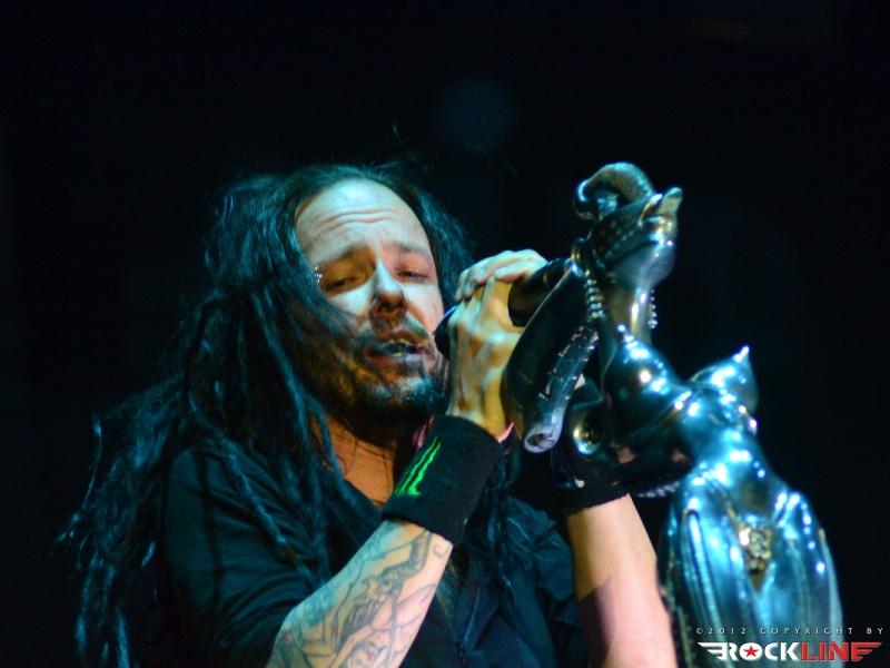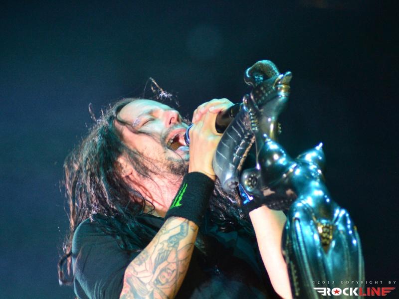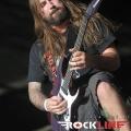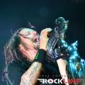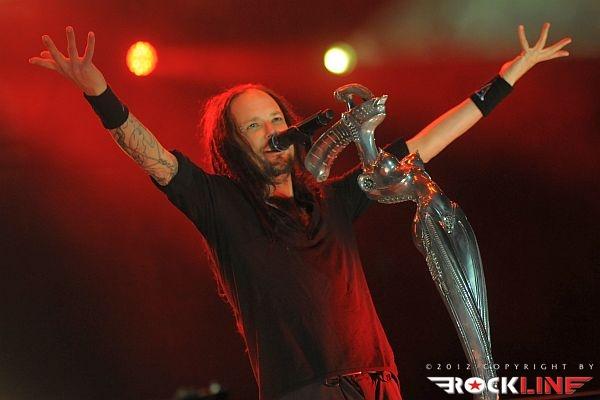 KoЯn, največji izvajalec letošnjega Metal Campa in skupina, ki je prispevala marsikaj k dobri prodaji vstopnic za festival! Obče priljubljeni »amerikano-novovalovksi metalci«, ki so s svojo pojavo dvignili prah na prizorišču in pričeli mešati štrene vrhov glasbenih lestvic zlasti na prelomu tisočletij in na začetku novega tisočletja z izdajami albumov »Follow The Leader«, »Issues« in »Untouchables« . KoЯn ostajajo tudi danes skupna, ki si ne postavlja mnogo žanrskih omejitev in večkrat združuje na sebi lasten način navidezno nepremostljive ovire med žanri metala, hip hopa, industriala, grungea, skratka skupna, ki je ni moč vtakniti v noben okvirček, skupna z jasno izpostavljenim atributom samonikle art karizme. Reginald »Fieldy« Arvizu je ostal doma, saj ga zadržala situacija, da z ženo pričakujeta otroka, vsa reč pa se je v obdobju tolminskega nastopa skupine za par pričela odvijati še hitreje, kot je bilo načrtovano, tako je Fieldy ostal doma, ob življenjski družici. Zato je vskočil v njegove škornje za poletne festivalske nastope po vzhodni Evropi Ryan Martinie, sicer basist skupine Mudvayne. To dejstvo je zapustilo vtis, da tistega značilnega trgajoče rožljajočega zvoka Fieldyjeve bas kitare nikakor ni bilo mogoče restavrirati, obenem pa je Martinie pokazal, daje kanček bolj sofisticiran basist, nemara na trenutke, če ne enakovredn, celo bolj iznajdljiv kar se tiče izkoriščanja prostora za plasma večje melodične razgibanosti samih linij. Martinie je na odru spominjal na zlega demona. Predvsem v trenutkih, ko so ga snopi stroboskopov osvetljevali od spodaj navzgor in je svoje intenzivno namazane oči izdatno izbuljil, ko je pogledoval okoli sebe. Seveda z otopelo ledenim pogledom in brez obrazne mimike. V ekipi KoЯn so sami ekstravagantni glasbeniki. Munky z obraznim ornamentom po navpični dolžini preko sredine obraza, ki spominja na zadrgo, je razvil pravo zvočno kuliso svoje eksperimentalne kitarske igre, zlasti pa je potrdil svoje mojstrovine izredni bobnarski gurman Ray Luzier, s prihodom katerega so leta 2009 KoЯn nadgradili zlasti svojo groove atribute same ritemske retorike, kot tudi izzivalnosti raziskovanja, kar je vselej gnalo skupino naprej. Ni čudno, saj je Luzier v preteklosti sodeloval z izrednimi mojstri svojih veščin, med drugim so to Billy Sheehan, Jacke E. Lee, Van Halenovec David Lee Roth, Tracy G itn…