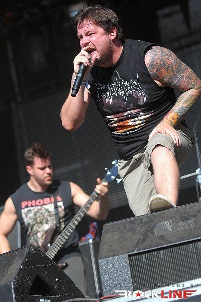 Drugačno situacijo pred odrom je bilo moč ugledati pred The Black Dahlia Murder, ameriško metalcore zasedbo, z vplivi death metala, prežetega z melodičnimi pasažami. Jezno riti kvintet , ki jih vodi nabriti vokalist Trevor Strnad (je mar slovenske gore list?), si je nadel ime po Elisabethi Short, ki so jo »ljubkovalno« klicali Black Dahlia in je bila v neznanih okoliščinah umorjena leta 1947! V delirij se je pognala masa kakih 3000 glav lačnih mošanja, ki so ga nevede zamudili z Warbringer. Odločen circle pit med skladbo Miasma je povedal vse. Znova zavesa prahu do neba. Trevor, ki je razkazoval svoj pivski popek in gravuro »Heartburn« v odlični formi z učinkovitim alterniranjem med kričavim core vokalom in nižjim, ki ga približuje k death metal grčanju! Bend ujet v ultrasoničnoi skulpturo ritmičnih blastov, pretrganih z vratolomnostjo groove breakov! Polna brutalizacija! Odlično počutje skupine je rezultiralo v prenekateri pohvali in zahvali pevca odlični publiki, ki je s svojo odzivnostjo dodatno podžigala igro skupine na odru. Zasedba je na Metal Camp festivalu predstavila aktualni album »Ritual« (2011), poleg omenjene Miasma, pa je bend odraketiral v prostor še skladbe A Shrine Of Madness, Moonlight Equilibrium, What A Horrible Night To Have A Curse, Malenchantments of the Necrosphere, Necropolis, Everyhing Went Black, On Stirring Seas Of Salted Blood, I Will Return in Funeral Thirst.