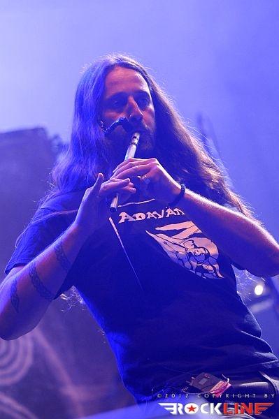 Eluveitie, najtrši zaščitniki "fruličarjenja" v metalu, so potrdili s svojim nastopom, da sodijo med njimi tudi men najbolj popularne in priljubljene skupine žanra folk metal. Kakšna evforija pred odrom, noro! Pravzaprav je bil na platoju pred odrom zbran kar cel Metal Camp festival. Spominjam se v februarju leta 2009 nastopa skupine v hrvaškem Zagrebu pred glavnimi nosilci koncertnega večera Kreator. Takrat je le malo ljudi posvečalo pozornost nastopu Eluveitie. Torej je skupina v zadnjih treh letih zares zrasla v prepoznavno in vodilno ime v svojem žanru. Peti studijski album, ki je znova izšel za Nuclear Blast Records z naslovom »Helvetios«, konceptualiziran, s tematiko o galskih vojnah, velja za enega najtrših albumov skupine, v njenem, do tega dne izdanem, opusu. Od tod tudi občutek, da so Eluveitie izmed vseh folk zasedb sprožili v proster na Metla Campu največ distorzirano podkovanih in podprtih decibelov v prostor ter izpadli zategadelj najbolj hrupno med njimi, saj je bil repertoar skoraj v 70% sestavljen le iz skladb novega albuma! Oktet res ponudi pašo za oči. Poleg plejade najrazličnejših tradicionalnih avtentično in ročno izdelanih instrumentov, kot so dude, hurdy gurdy, gaita, bodhran, mandola, različne vrste piščali, so Eluveite pilili tudi raznoliko integracijo slogov petja. Tu je Glanzmannovo brutalno vreščanje, kombinirani z njegovimi čistimi napevi, v katere se vmešane ženske vokalne linije violinistke Meri. Nalezljivi refrenski napevi ukrivljeni v sozvočju s tradicionalnimi napevi keltske pastorale, so seveda podžigali drug za drugim obnorelo občinstvo, ki je takoj pokazalo, da se je novi album med publiko že odlično prijel. Večkrat so se v publiki ljudje kar prijeli za ramena in enovito poskakovali, medtem ko je skupina krojila nebrzdani koncertni tempo. Med koncertom je kar nekaj ljudi poiskalo zdravniško pomoč, pri vhodu v zaodrje, kjer je stal avto z zdravniško oskrbo in priročnim osebjem, ki je ravnalo in krpalo nosove in ostale poškodovane dele krhkih in nežnih človeških telesc. Od prvega do zadnjega takta. V uri in petnajst minut! Z izredno intenziteto nabit koncert, poln peklenskega sodelovanja na relaciji skupina – publika, je pričaral tega dne, kot tudi v celokupnem seštevku na celem festivalu, enega najbolj vročih koncertnih seans! Po obisku in intenzivnih reakcijah publike je prekašal celo nastop glavnega nosilca sredinega dne, alternativnih ameriških metalcev KoЯn. Eluveitie,odrsko perfektno uglašena ekipa, je ponudila na repertoarju sledeče skladbe: Helvetios, Luxtos, Neverland, Bloodstained Gang, Meet The Enemy, A Rose Of Epona, Inis Mona, Alesia, The Uprising, Kingdom Come Undone, Havoc. Koncert je zasedba odprla z uvodnim delom nove plošče v skladbo Helvetios (Prologue), za skladbo Havoc, pa se je odvrtel njen nasneti izhod (Epilogue).