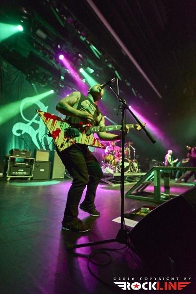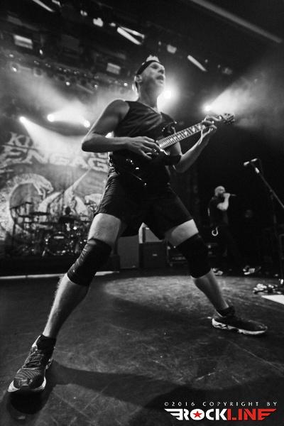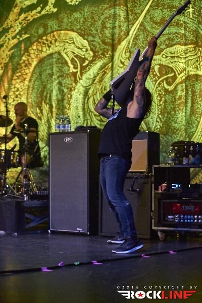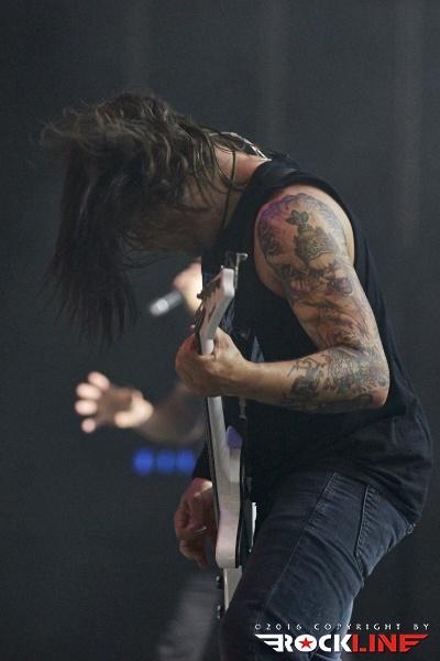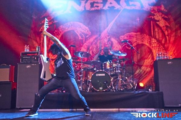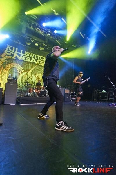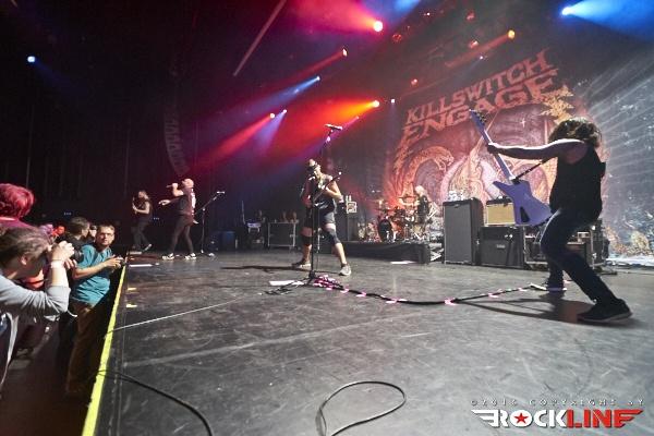 Nekaj minut po deseti so na oder stopile zvezde večere, Killswitch Engage. Skupina se je v Slovenijo vrnila po slovitem koncertu v Mariboru, leta 2008. Tokrat z originalnim pevcem Jessejem Leachom, ki se je v skupino vrnil leta 2012. Skupina je na turneji promovirala aktualni album Incarnate (recenzija TUKAJ), ki je do sedaj bil dobro sprejet. Svoj set je otvorila z znano otvoritveno vižo A Bid Farewell, verjetno najbolj poznano otvoritveno skladbo KSE. Publika pa je že od samega začetka sodelovala s prepevanjem znanih refrenov, ki jih ni bilo konca. Tudi same novitete so se vidno prijele, seveda pa KSE niso pozabili na stare oboževalce, ko so odigrali nekaj skladb z albuma Alive of Just Breathing. Killswitch Engage so po vseh letih še vedno dokaj na vrhuncu moči. Skozi cel nastop se je kvintet trudil narediti spodoben šov, poln udarnih riffov, melodičnosti in močne ritem sekcije. Kitarist/producent Adam Dutkiewicz je zelo dobro pokazal, kako je bistvena natančna desna roka, da vse skupaj zveni še toliko bolj suvereno in čeprav je bil Adam že vidno pod dozo alkohola, kakšnih večjih napak ni bilo zaznati. Vokalist Jesse Leach je prav tako v dobri formi. Njegov vokal je jasen in izrazit. Mnogokrat je vokale naknadno prispeval še Adam, kar je naredilo vokalne harmonije še toliko bolj posebne. Preostali člani pa so bili tudi solidno uigrani, tako da je skupina kot celota odlično povezana. Proti koncu so KSE nanizali zimzelenčke, kot so Rose of Sharyn, The End of Heartache, My Curse in In Due Time. Mogoče ni vsak dobil svojega favorita, a na splošno nad nastopom KSE ni bilo možno biti razočaran.