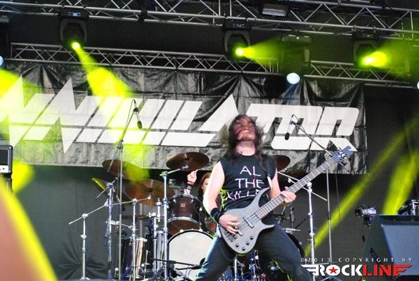Časa za počitek pa ni bilo prav dosti, saj je veliki oder že vabil predse z eno večjih atrakcij letošnjega festivala! Čas je bil za napad strupenega kanadskega thrash metala, ki ga je nestrpno čakalo kar lepo število ljudi. S petnajst minutno zamudo so z novostjo Smear Campaign (s prihajajoče štirinajste studijske plošče Feast) naša ušesa z odličnim thrash metalom blagoslovile kanadske legende Annihilator. Band, ki je s svojima prvima dvema albumoma Alice in Hell (1989) in Never, Neverland (1990), ki sodita med najsvetlejše trenutke thrash metala, nakazal vzpon na prestol thrasha, s svojimi kasnejšimi izdajami žal ni uresničil velikih pričakovanj in upov in počasi tonil v pozabo. A časi se tudi za Annihilator očitno končno le spreminjajo in če si kdo to zasluži, je to eden najbolj delavnih metalcev Jeff Waters. S predlanskim albumom Annihilator je dokazal, da mu sape in zagona še ni zmanjkalo, odlomki nove plošča pa prav tako veliko obetajo. Annihilator so dokazali, da so v živo thrashersko strupeno nastrojeni in ena najboljših koncertnih zasedb sploh! Vodja in edini preostali originalni član zasedbe, veliki Jeff Waters (po novem znova obritoglavi), je energično vodil skozi celoten tričetrturni set, skakal sem in tja, ter publiko ves čas spodbujal in podžigal s tem, da je stopil povsem na rob odra in s svojo klasično rdečo lepotico v stilu Steva Harrisa postreljal publiko. Tudi Dave Padden, fant videza člana kakega boy-benda se je v živo izkazal, njegov vokal je dozorel in se odlično obnese tudi v komadih Rampage/Pharr/Randall ere, izdatno pa s prepričljivimi back vokali pomaga eden in edini Jeff Waters. Žal je bil zaradi začetnih tehničnih težav set Annihilator skrajšan za debelih petnajst minut in bend takega kova bi si zaslužil občutno daljšo minutažo. Med zaključnima klasikama The Fun Palace in Alison Hell so nas šele dobro začeli boleti vratovi, pa je bilo že vsega konec. Škoda, vendar pa Annihilator v živo še vedno brcajo s polno močjo! "Listen to Annihilator, eh!"