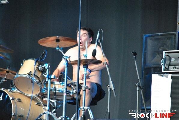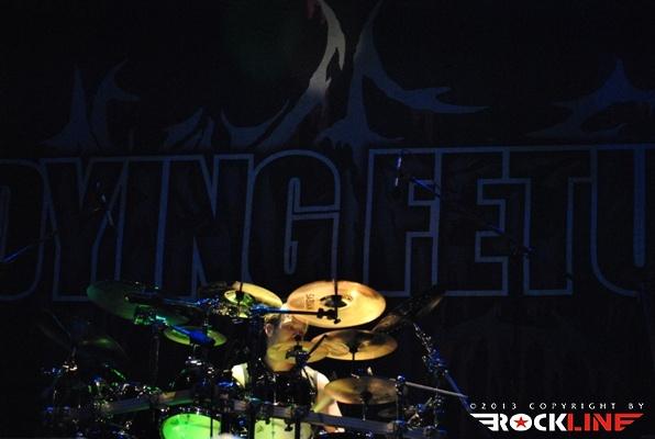 Nosilec malega odra tretjega dne je bila legendarna ameriška death metal zasedba iz Marylanda, Dying Fetus, ki je uprizorila verjetno kar najboljši koncert dneva in odnesla medaljo. Bend se bliža 20. obletnici svojega delovanja in to zgolj zaradi neumorne volje edinega še originalnega člana Johna Gallagherja. V zasedbi se je namreč v vseh letih zamenjalo toliko članov, da zmanjka vseh prstov, da bi jih prešteli, danes pa Dying Fetus nastopajo kot trio. Kar pa se Gallagherju, Seanu Beasleyu (bas) in Treyu Williamsu (bobni) niti malo ne pozna. Bend je lani izdal eno boljših plošč svoje kariere, Reign Supreme, in mali oder je pod težo nasilnih rifov eksplodiral že po prvih tonih, ki so dokazali, da lahko le trije posamezniki proizvedejo hrup Velikega poka. Uigranost zasedbe je fenomenalna, prostora za napake pri Dying Fetus preprosto ni, pa čeprav znajo biti fantje hudo kompleksni. Zvočna slika benda je bila popolna! V ospredje je bilo porinjeno nečloveško Williamsovo bobnanje z vso paleto do potankosti izdelanih prehodov in hudičevo hitro brcanje po bas bobnih. Gallagher je medtem skrbel za sekljanje in rezanje s fantastičnimi riffi in peklensko dobrimi solažami, ki pa jim je zlahka, z neverjetno spretnostjo sledil Beasley z "blunt force" basiranjem, dvojec pa je poskrbel še za demonični vokalni duet. Gallagher je s tem, da je letos nadomeščal Franka Mullena v Suffocation, očitno izboljšal tudi svoj položaj frontmena, saj ne stoji več le kot lipov bog, pokaže malo več gibanja, boljša pa je tudi komunikacijo s publiko. A vendarle Dying Fetus časa niso izgubljali z odvečnim besedičenjem, temveč so prišli, odigrali in šli. V stilu največjih!