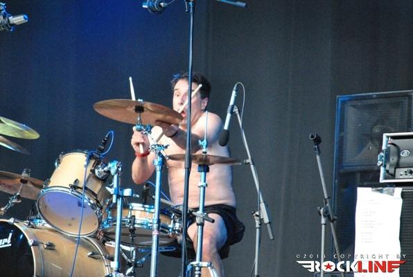 Žal se je nato znova okrepilo deževje in ker smo pusiji, smo zato večji del popoldneva preždeli v suhem zavetju z mrzlim v rokah in kljub dobrim namenom zamudili nastope domačih veljakov Space Unicorn On Fire, Within Destruction in Gonobe (prepričan sem, da so odigrali tako kot se mora in tujcem dokazali kaj je slovenski metal!). Veliki oder nas je tako predse povabil šele pozno popoldne z londonskimi stonerji Orange Goblin, ki so nas zasuli z debelim, kot pomfri mastnim, zvokom. Masivni rifi in rohneča ritem sekcija ob podpori spohanega vokala so z odra leteli v izdatnih dozah in lepo je bilo videti, da stoner/doom tudi v popoldanskih urah prepričljivo in pozitivno deluje na publiko. Res pohvalno, da je organizator letos pripeljal lepo število zasedb iz tovrstnih žanrov, saj so bili ti prejšnja leta skorajda v celoti spregledani. Umazan zvok distorziranih, fuzzy kitar, ki so gruvale kot za stavo in grob vokal Bena Warda so upravičili pričakovanje, Orange Goblin pa so dokaz, da stoner lahko še vedno zveni sveže in prepričljivo.