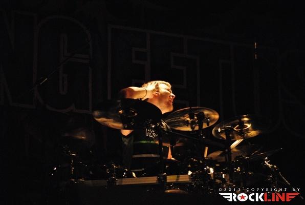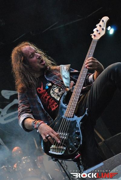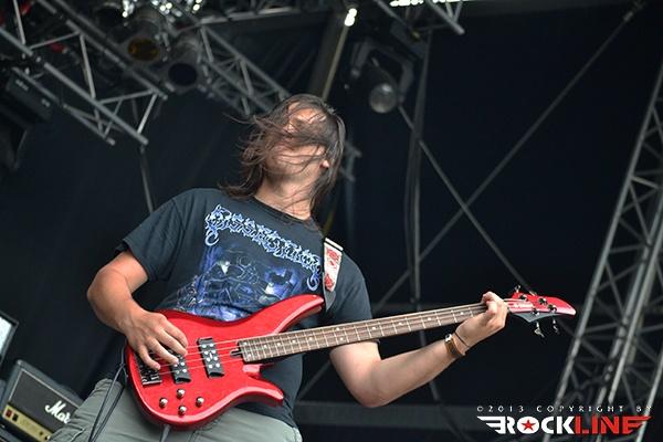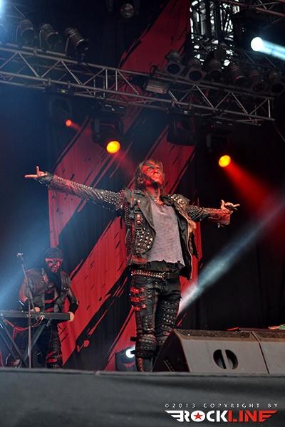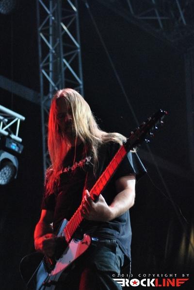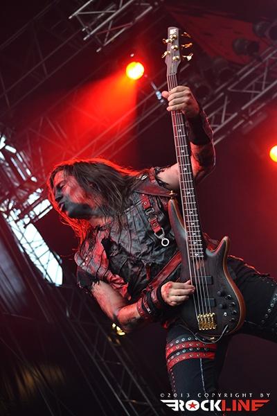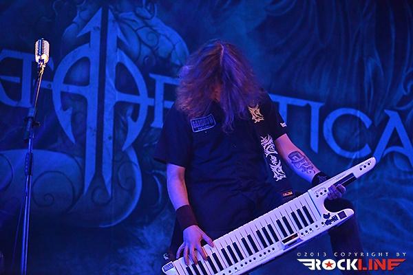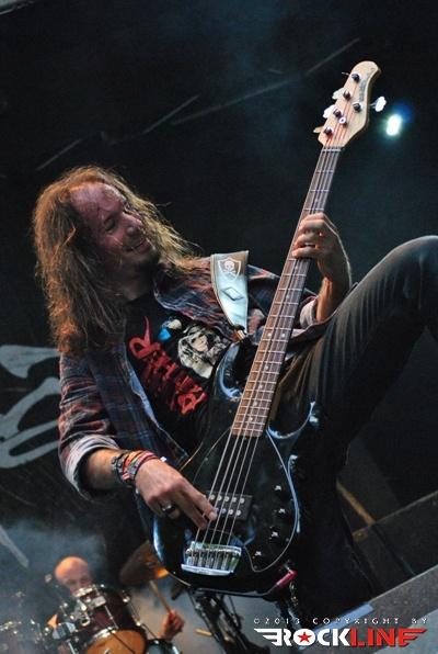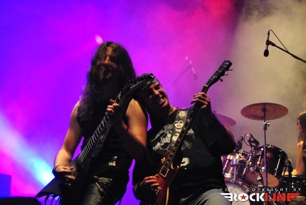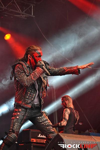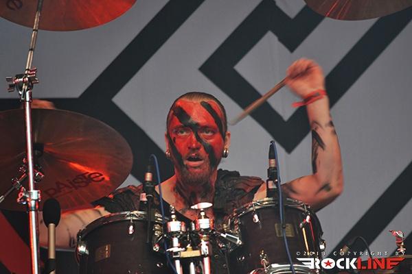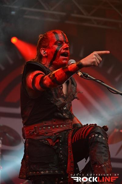 Turisas? Ah ti nalivaški ljubitelji pleistocenskih kož! Ni kaj. Dež je pričel pojenjati prav v času čakanja na nastop Turisas. Narod se je obilno nagnetel pred oder. Tisto kar so narodu dali prejšnji dan Alestorm, so prišli danes nadoknaditi s Turisas. Alibi za šemljenje, pijančevanje, se pravi obče zganjanje norčij! Le s piratskih ladij so se morali prestaviti na vikinške bojne Drakkarje! Mathias D.G. 'Warlord' Nygårdod, nepoboljšljivi prvi vodja in frontman zasedbe, je k alkoholiziranju teles zgolj dodatno nagovarjal med koncertom. To je stil vikinga! Stil Turisas! Nastop je bil pričakovana orgija na relaciji skupina - publika. Vseeno je bilo zanimivo opazovati, kako je atmosfera med nastopom iz minute v minuto rasla. Dež je bil pozabljen in nekje na polovici koncerta je s skupino že nezadržno norelo tričetrtine prisotnih. Nabito polno predodrje! Čeprav je zasedba podredila nastop promociji albuma »Stand Up And Fight« (2011), je v repertoarju predstavila tudi že povsem novo skladbo Into the Fire iz albuma »Turisas«, ki izide konec letošnjega avgusta! Odlična energija med koncertom! Za to je znova poskrbela publika. Bend je sklenil nastop s ponarodelo Battle Metal v pravem zaključnem vrhuncu svojega nastopa. Z obrazi, namočenimi v rdečo kremo, delujejo folk metalci bosonogega in kožuhovinastega »outfita« na prvo žogo »otročje«, a kemija seksteta, kjer posebno vlogo igra prelivanje harmonij med kitaro, violino in harmoniko, deluje profesionalno in dostavlja odlično interpretacijo svojega materiala. In to vselej, ko je gre za odrski nastop. Šlo je pogrešati le izvedbo usekane Boney M priredbe Rasputin!