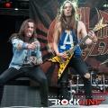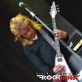 Vprašanje, če si je šel Mustaine po koncertu ogledati nastop zasedbe Riot V na mali oder festivala? Srečal ga ni bojda nihče. Nemara bi ga zdramilo, da bi našel pot h glasbenemu prabistvu in sveti preproščini. To kar so pričarali Riot V na malem odru po koncertu Megadeth, je popolno nasprotje. Pet ljudi, osnovna klasična postavitev kvinteta, uglasitev brez slehernega lišpa, kozmetične protetike, skrivanja za efekti ali lepotnimi popravki. Pet ljudi uigranih in v top formi s polnim šusom nad Tolmin. Nastop Riot V. Po pokojnem ustanovitelju zasedbe Riot Marku Realeu, nadaljujejo njegovi nekdanji tovariši kariero pod imenom Riot V oziroma približku klasične Thundersteel postave Riot in sicer na čelu s kitaristom Mikeom Flyntzem, basistom Donom Van Stavernom, medtem ko ostale pozicije zapolnjujejo prekaljeni bobnarski veteran Frank Gilchriest (Virgin Steele), fantastični »približek« Tonyja Moorea na vokalu pod imenom Todd Michael Hall, mesto drugega kitarista pa pripada mlademu kitarskemu upu Nicku Leeju. Bend se je zavihtel v enkrat daljši set, kot pred 13. dnevi na nemškem festivalu Bang Your Head!!! v mestu Balingen – RockLine reportaža TUKAJ.
