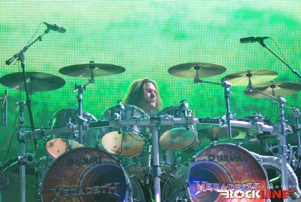 In za finale na velikem odru še staroste thrash metala Megadeth. Že nekaj let vztrajajo v čvrsti postavi, kar je hvale vredno. Bend, ki si ji takoj ob prihodu privoščil mali izvedbeni spodrsljaj ko so kitare rahlo zaostajale za ritem sekcijo v uvodnem riffu Hangar 18 je z izbiro otvoritvene skladbe zadel glavico na žebljico kar se tiče takojšnjega iztržka adrenalinske naglice s katero je odreagirala hipoma podivjana publika. Komad obenem tudi silno smelo predstavi veliko moč Mustainea, kot songwritterja. No ko govorimo o bendu, ni mnogo narobe, če govorimo kar o ednini. Šef Dave Mustaine je seval odlično razpoloženje. In od tega je vse odvisno pri Megadeth koncertu. Nekateri bi nemara barabinsko pripomnili da je navdušenje odvisno od tega, če so kje v Mustaineovi bližini W.A.S.P. Kakorkoli. Gremo na koncert. Bend predstavlja na poletnih festivalih »best of« repertoar! Torej pravi »železarski« set, ki po roku trajanja ne zmore zarjaveti. Seveda s polno odrsko kuliso, ki je vključevala bogate filmske projekcije vezane na sporočilnost samega materiala, ki so ga fantje izvajali. Ne glede na to, da je nastop Megadeth precej predvidljive narave, saj se morajo Mustaineovi uslužbenci gibati po odru, kot jim zaukaže njihov ljubljeni vodja, pa odšteje vse seveda izjemna karizma skladb pionirskega porekla, ki so jih tega večera drugo za drugo nizali Megadeth.
