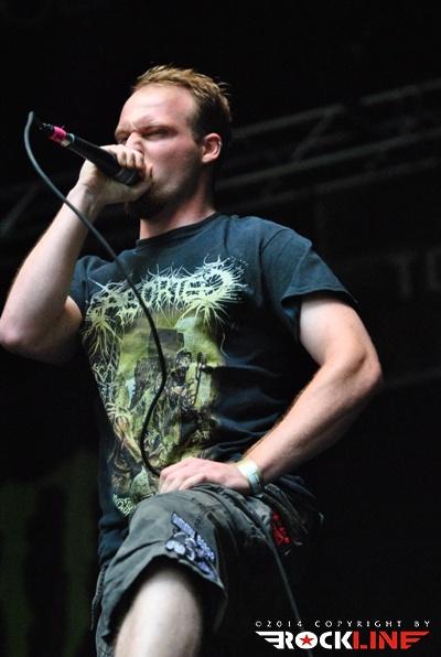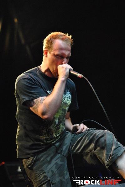 Iz groba so se na drugi oder splavili še eni death metalci, in sicer upi evropskega death metala, Belgijci Aborted, ki so zadnjih nekaj let stalni gosti naših odrov. A če smo bili bendov, ki so si slovensko državljanstvo v preteklosti hoteli pridobiti kar na silo (Ektomorf, Korpiklaani, Amon Amarth), pa si lahko Aborted slovenski potni list kar mirno vzamejo. Obetajoče so Aborted začeli že med tonsko vajo, med katero se je kitarist Danny Tunker zabaval z rifi Carcass in Decapitated, nato pa je sledila prava vodikova bomba brutalnega death metala polnega črev, krvi, izmečkov in podobnega. Svencho je postal jebeno dober frontmen, ki ni na odru pri miru niti za sekundo, obenem pa med vso silno telovadbo iz svojih glasilk izvablja globoke growle, visoke screame in pujskasto cviljenje. Aborted so skorajda nabito polno prizorišče zmleli kot v Soylent Green ali Delicatessen (mlajsk), še vedno pa mi gre na falus, da so tako kot vedno tudi tokrat v celoti zignorirali album Slaughter & Apparatus, ki resda zveni kot Carcass klon, ampak tudi klon Carcass ne more zveneti slabo, hehe. Je bila pa setlista kljub temu slastna kot soylent green burger, dodobra je pretresla s komadi z aktualne plošče The Necrotic Manifesto, izostala pa ni niti klasika The Saw and the Carnage Done. Odličnemu nastopu benda ni ostala dolžna niti publika, ki je postala za dobro uro neprepoznavna zmes udov, las in teles.