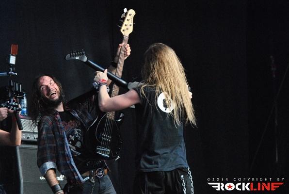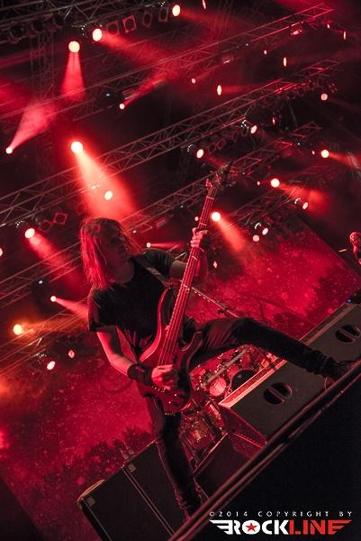 Opeth. Zasedba metal univerzuma, ki doživlja v zadnjih letih eno največjih slogovnih tranzicij, so bili izbrani za glavnega nosilca prvega dne festivala. Človek niti ne ve natančno več kakšno oznako bi jim pripel v tem trenutku. Pridevnik »progresivni« definitivno ostaja, komponento metala pa v zadnjem času vse bolj nadomeščajo komponente, ki se nagibljejo k revitalizaciji zvoka simfoničnega progresivnega rocka sedemdesetih in celo jazz rock fuzije. Opeth so od vselej radi eksperimentirali, vselej šokirali s svojim svobodoljubnim eksperimentom. Genialni Mikael Akerfeldt je skrbel med nastopom v skladu s tradicijo mojstra črnega humorja za dobro vzdušje, ki je izvabljalo pozitivne vibracije s strani publike, bend pa je pravzaprav izvajal enega zadnjih nastopov s »Heritage« kuliso. Akerfeldt je znan po svoji glasbeni razgledanosti, zato je za otvoritev »šokiral« avditorij z izbiro nasnetega uvoda s skladbo Through Pain to Heaven nemških kozmičnih elektro avant rockerjev Popol Vuh! No stvari je kmalu na »pravo mesto« postavila skladba The Devil's Orchard (»Heritahe«, 2011). Po Heir Apparent, očitno eni izmed Akerfeldtovih najbolj priljubljenih »Watershed« skladb, je bend prvikrat »srtresel« množico s prvim sladostrastjem Opeth nastopa imenovanim White Cluster iz kultnega albuma »Still Life« (1999). Crowd surferji so imeli to pot kopico preglavic. Okej, White Cluster je še šel nekako skozi zanje. Vendar pa je tudi za to skladbo značilno kup fluktuiranja razpoloženjskih stanj. Zato je nekajkrat prav smešno izpadlo, ko je nekaj crowdsurferskih korenjakov drsalo po rokah publike na skorajda hipnotično zapeljanih mirnih akustičnih pasaža s čistim Akerfeldtovim vokalom. Magija in hipnoza. Ena beseda. Opeth. Odlična set lista, ki jo je sklenila vrhunska Blackwater Park v velikem finalu. Nastop Opeth je valovil na orjaških valovih velikih preklopov vzdušij. Presenečenje je dostavil v set listo tudi komad Demon of the Fall -,skoraj pozabljena Opeth skladba z njihovega tretjega albuma, medtem ko so ljub8ilteji »zlate dobe«, to je tiste »progresivno death metalske« zagotovo najbolj uživali v skladbah, kot sta fantastična Deliverance in za njo edina »Ghost Reveries« točka Atonement,