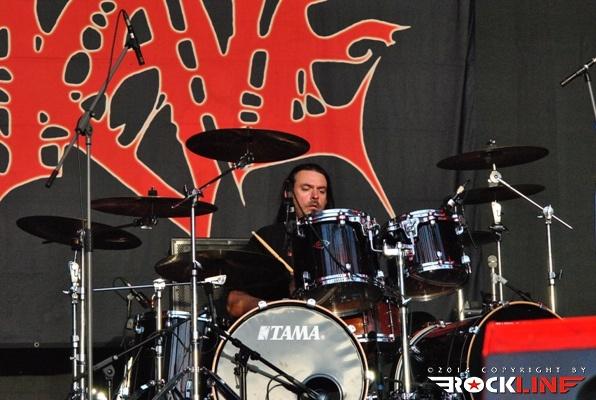 Žal se je peklenski svet iz katerega so vstali Norvežani križal ravno z nastopom veteranov švedskega death metala Grave, zato je vonj gnijočega mesa klical, da iz groba vstanemo, otresemo zemlje in vonja cipres pod velikim odrom. Grave so trenutno poleg Unleashed verjetno edini še polnokrvni old-school švedski death metal, ki igra… no, death metal. Dismember so šli kvačkat v prezgodnjo penzijo, obe verziji Entombed pa obetata, a vemo, da novega Left Hand Path ni mogoče pričakovati. Grave pa so tisti, ki že od leta 1986 marljivo skrbijo, da se na Boss Heavy Metal in Distortion pedalih ne nabira prah. In glede na pokazano nič ne kaže, da bi Grave kaj kmalu spadali tja kamor kaže njihovo ime. Moč in brutalnost švedskega death metala namreč še vedno prepričljivo veje iz njih, z aktualno ploščo Endless Procession of Souls pa so vsekakor dokazali, da še niso rekli zadnje besede. Grave so nas za začetek pozdravili kar s klasičnim rušilcem Into the Grave, nato pa nas sprehodili po več ali manj vseh ploščah. Čeprav edina stalnica benda že skoraj četrt stoletja ostaja vokalist in kitarist Ola Lindgren, ki še vedno kruli kot na Sexual Mutilation demu, pa so zavoljo odličnega, glasnega in eksplozivnega zvoka zablestela tudi ostala tri relativno sveža trupla. Prvi death metal vrhunec festivala, ki jih je bilo do konca še nekaj!