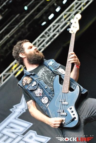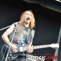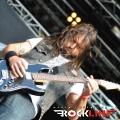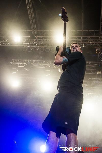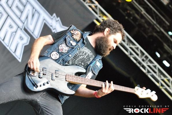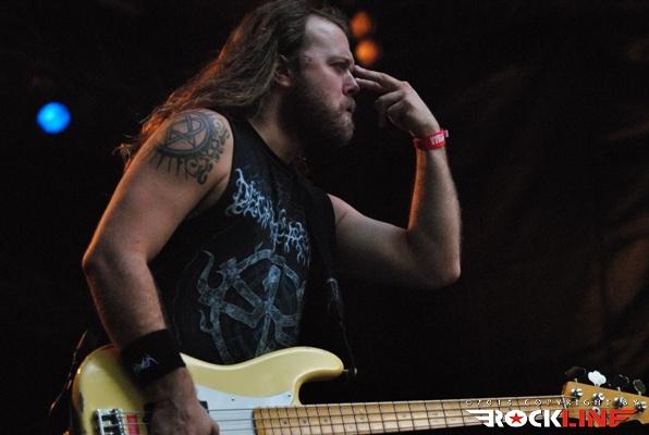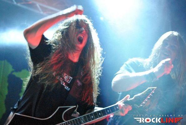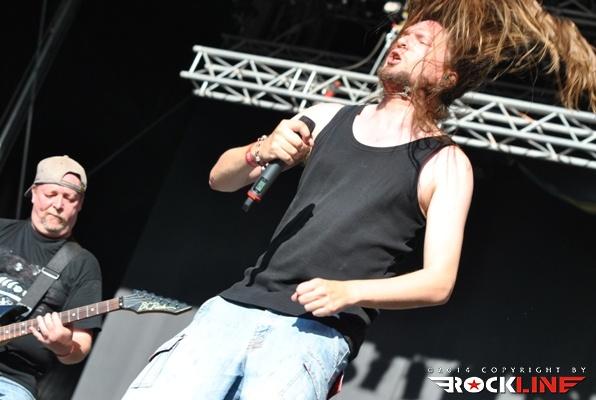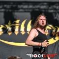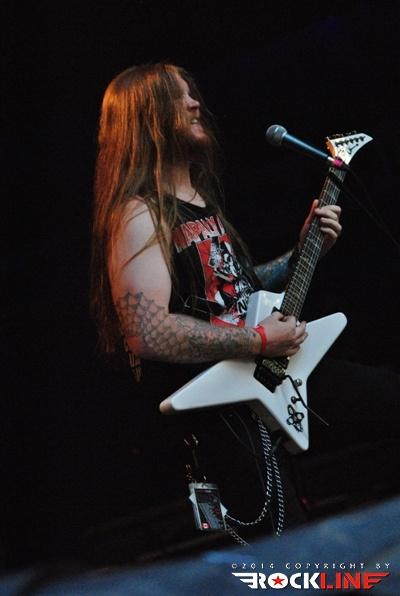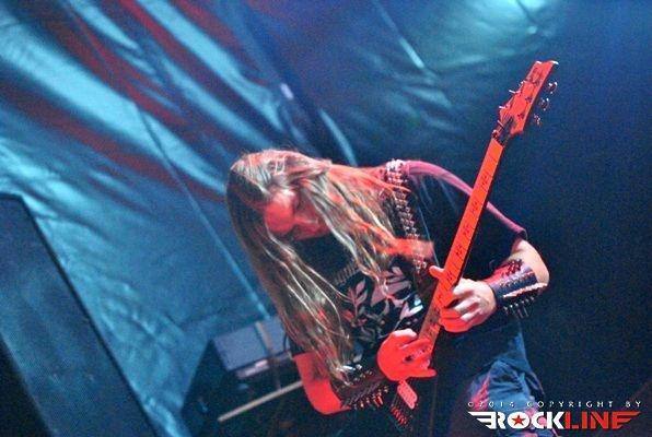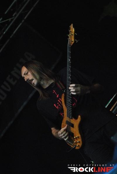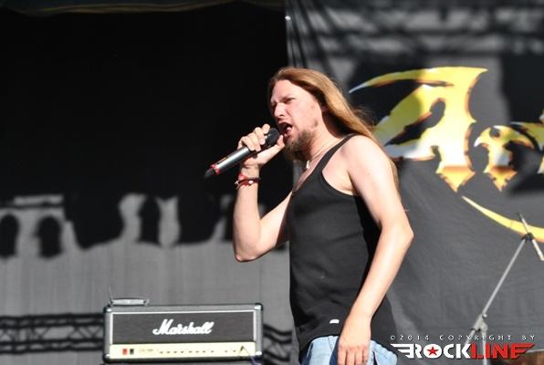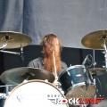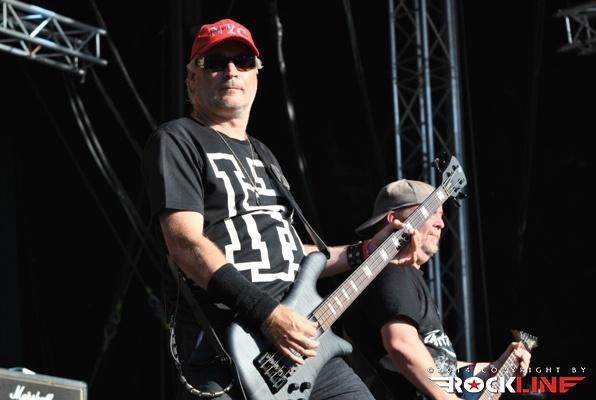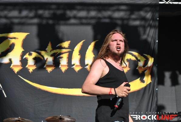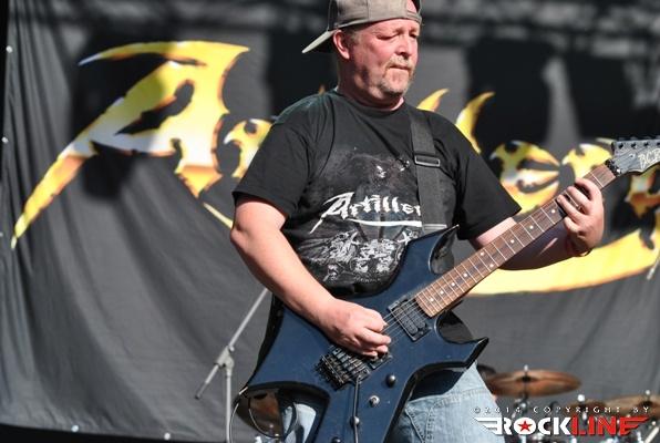 Legendarni danski thrasherji Artillery so zgodaj znašli odru. No lanskoletni izdaji Bang You Head festivala v nemškem Balingenu, so nastopili reci in piši malo preko desete ure dopoldan. Torej učna ura skandinavskih veteranov evro thrash metala katerih vajeti držita še vedno trdno v rokah skupaj brata in kitarista Morten ter Michael Stützer. V ekipi se drži na bas kitari še vedno Peter Thorslund, ki se je skupini pridružil že leta 1989, ko je Morten presedlal iz igranja bas kitare na kitaro. Postavo zapolnjujeta mlajša člana ekipe in sicer bobnar Joshua Madsen ter vokalist Michael Bastholm Dahl, ki se je po nekaj rokadah zasedbe pri iskanju ustreznega vokalista, za Artillery izkazal naposled, kot mož iz pravega testa. To je Michael z odlično predstavo potrdil tudi v Tolminu! Novi album z naslovom »Legions« je izšel v lanskem novembru in bend je postregel množici sredi (ohoho!!!!) še vedno sončnega vremena z naslovno skladbo, nadalje otvoritveno Chill My Bones (Burn My Flesh) ter God Feather. Seveda so sladokusci prišli na svoj račun v nadaljevanju 50. minutne fantastične predstave, ko je bend postreljal nekaj klasičnih projektilov iz svoje konkretno otipljive diskografske zapuščine! V nadaljevanju smo uživali v ostrem, brezkompromisnem mitraljiranju, ko je bend divjal s skladbami 10.000 Devils, By Inheritance, When Death Comes, Khomaniac, The Challenge in sklenil (nekako pričakovano) nastop z razvpitima šrapneloma Terror Squad ter The Almighty. Strupeno in rušilno! Artillery ostaja tudi na zrela leta blazna beštija žejna krvi!