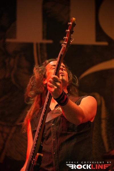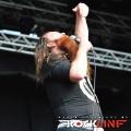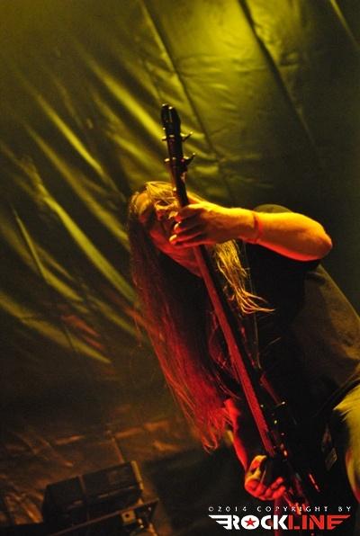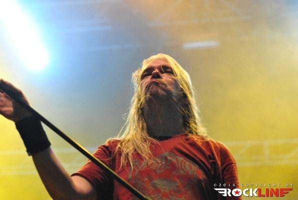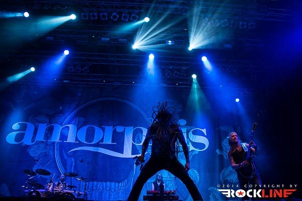 Večina Metaldays festivala pa je anksiozno pričakovala nastop finskih metalcev Amorphis. Mngo prišlekov na prizorišče, je prišlo na festival vsega za en dan in s temeljnim ciljem, da si ogledajo nastop Amorphis. Iz zgodnje death metalske formacije je zasedba z leti doživela korenito tranzicijo tako, da je vgradila v svoj glasbeni dosje pravo žanrsko fuzijo, ki danes poleg zadržane ekstremne veje v veliki meri nagiba tehtnico v prid prvinam simfoničnega power metala kot tudi tradicionalno izvornemu folk melosu ter celo progresivnemu metalu! Vse večja stopnja obče dostopne muzikaličnosti in kombiniranje grčanja s čistim petjem je razširilo bazo Amorphis fanov, zlasti po albumu »Skyforger« (2009). Glavni magnet odrske predstave Amorphis je seveda vokalist Tomi Joutsen, ki tokrat svoje »čudne naprave« načeloma imenovane mikrofon, ni imel nasajane na stojalu. Nekajkrat je ob pogledu na specifični aparat Tomi mimobežno deloval, kot bi si sušil lase s fenom. No šalo na stran. Mali divjak, ki mu štreni dreadlocks-ev visijo skoraj do tal, se je enkrat več izkazal za velikega frontmena. Zlasti zavoljo velike karizme in spretnega izkoriščanja prostranega odra po katerem je odlično razpoloženi vokalist teatralno tekal med koncertom. »Circle«, se pravi aktualni studijski album zasedbe je odprl koncert z introm in novo skladbo Shades of Gray, sicer pa je zasedba zgnetla repertoar iz kopice starejših skladb med izvedbo katerih so na svoj račun prišli tudi tisti, ki se radi spominjajo Amorphis, kot ene najbolj zanimiv death metal zasedb, ki so se pojavile na planetu, v letih kmalu po vzniku žanra (denimo izvedba skladbe Into Hiding takoj po nasnetem instrumentalu Thousand Lakes ter v samem zaključku Black Winter Day). Bend pri tem ni zaobšel niti albumskega prvenca, ko se je v drugi polovici nastopa lotil skladbe Vulgar Necrolatry, medtem ko je užiti v živo skladbo, kot je My Kantele iz albuma »Elegy« (1996), vselej znova enkratna izkušnja polna prave atmosferične popolnosti. Bend je v odlični formi. Čuti se da Amorphis vseskozi ogromno igrajo in nastopajo ter da imajo za seboj še eno izmed mnogih turnej, ki jo sklepa aktualna poletna festivalska. Tomiju je publika dobesedno jedla iz roke. Amorphis so zapustili oder v soji izjemne izvedbene perfekcije. Glede na kasnejši debakl »Elvismetalcev« Volbeat, so pravzaprav Amorphis prevzeli status zmagovalca glavnega odra tretjega festivalskega dne.