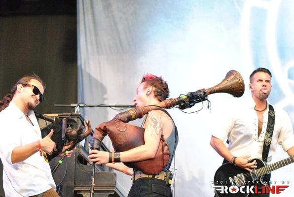 Malo pred osmo zvečer je zasedla glavni oder kar osem članska zasedba imenovana Saltatio Mortis. Prevod imena skupine iz latinščine bi se glasil »ples smrti«. Že lahko, a osebna glasbena izkaznica skupine, je prej urezana na veselje, kot na žalovanje. Nemčija ponuja močno paleto zasedb, ki v metal vnašajo melodije srednjeveških trubadurjev, skoraj po pravilu pa k temu sodi vključevanje prastarih srednjeveških instrumentov, oblačenje v kilte, okrancljano usnje in drugo navlako žvenketave brončenosti in železnine. Saltatio Mortis uporabljajo kar dvoje dud v postavi, občasno se lahko na odru znajdejo celo tri dude. Plejada najrazličnejših piščali, kot tudi tamburica, spremljajo sicer klasično metalsko orožarno električnih kitar ter bas kitare in bobnov. Odlično razpoloženi frontman skupine Alea der Bescheidene, je vseskozi silno angažirano podžigal publiko. Pri tem je prebiral vztrajno in zelo učinkovito s plonkiča celo nekaj stavkov v Slovenščini, s čimer si je hipoma pridobil vse polno simpatij. Tudi s strani tistih, ki so nastop skupine spremljali bolj od daleč, zgolj iz mimobežne radovednosti. Sicer pa je plejada obiskovalcev v Saltatio Mortis našla pravega odrešitelja in alibi, da se našemi v vse mogoče arhaične maškare in privleče pred oder najbolj nore rekvizite, ki jih lahko sproducira človeška domišljija, da si maksimalno zakomplicira življenja. Bend igra odlično, zvok je bil strupeno skalibriran in vokal Alee je funkcioniral optimalno. Bend je dostavil zares optimalen nastop in korenito zapolnjeno prizorišče travnika pred odrom je s svojim igračami vred doživljalo pravi delirij. Pravzaprav ga v tem trenutku ni bilo nemškega državljana, ki je prispel v Tolmin na festival, da slučajno ne bi prisostvoval nastopu Saltatio Mortis. Bend je predstavil aktualni studijski album »Das Schwarze Einmaleins«! Koncertni večer je zategadelj odprla nova skladba Früher war alles besse, ki so jo nasledile še Idol, Satans Fall, Prometheus, Uns gehört die Welt, Eulenspiegel, Wachstum über alles, Nur ein Trau, Koma, Sündenfall, Falsche Freunde in zaključna Spielmannsschwur.