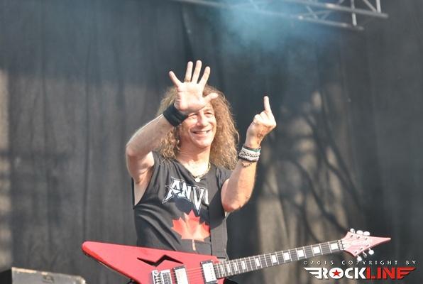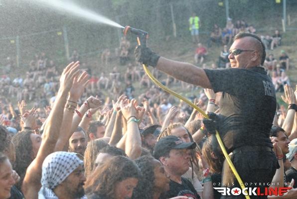 Prvo večje ime glavnega odra so bili nesmrtni Kanadčani Anvil, na katere je kljub temu, da so predstavljali pomemben vpliv na tako velike bende kot je Metallica, pred nekaj leti iz popolne obskurnosti spomnil šele odlični dokumentarec The Story of Anvil. Napačne poteze so bend, ki si je obetal veličino pred dobrimi dvajsetimi leti namesto tega popeljale v popolni underground kult, a Lips je živo utelešenje neusahljive vere v metal, ki ne umre tako zlahka. Anvil bodo leto izdali že svojo šestnajsto studijsko ploščo in čeprav zna kvaliteta njihovih studijskih izdelkov pošteno nihati, to nikakor ne velja za njihove odrske nastope. Neumorni trio je po nakovalu udaril z vso močjo ter nad Metaldays takoj za začetek poslal število zveri, 666, s kultnega Metal On Metal, nato pa kljub pošteni popoldanski pripeki Tolmin raztreščil z udarnim heavy metalom, ki je lomastil kot Godzilla po Mothri. Seveda ni manjkal tudi ta komad, verjetno najboljši trenutek koncerta Anvil, v katerega sta Lips in novi basist Chris Robertson (ki se je odrezal vrhunsko in do srca nasmejal s svojimi grimasami, ki prej kot na basista heavy metal benda spomnijo na nekaj z res nizkim IQjem po možnosti povlečenim iz ameriškega Juga) popeljala s teatralno, ultra »cheesy« uprizoritvijo. Karizma in otroška razposajenost Kudlowa je tako nalezljiva, da bi ga po koncertu najraje stisnil za lička, četudi stari pokvarjenec med zaključnim Metal On Metal po kitari še vedno drgne z dildom. Zakon!
