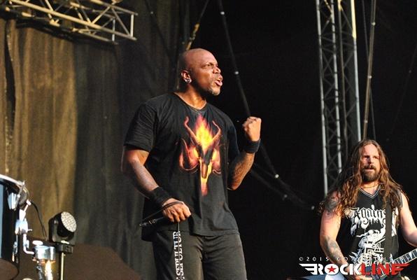 Po Death Angel se je na glavnem odru thrashiranje nadaljevalo z brazilsko-ameriško navezo Sepultura. Dolgotvezenje o tej legendarni skupini je tu popolnoma odveč, nesmiselno je tudi malikovanje legendarne zasedbe iz devetdesetih, namreč ob potencialnem reunionu bi Sepultura zvenela precej slabo zaradi same fizične kondicije bratov Cavalera. Treba se je bilo preprosto sprijazniti, da je Sepultura drugačna. In po dolgem času se je ta drugačnost nehala ignorirati in skupina je bila na festivalu več kot dobro sprejeta, sodeč po številčnosti obiska na njihovem nastopu. Sepultura so v eni uri v Tolminu, kjer so se predstavili prvič na velikem odru, odigrali svoj set suvereno, energično in tudi prepričljivo. Veliko je k zasedbi pripomogel sam bobnar Eloy Casagrande, ki dejansko lahko brez težav igra tudi tiste zelo zahtevne skladbe iz obdobja, ko je bil Igor Cavalera še pri močeh in navdihu. Skupina je povzela trenutno obdobje s skladbami Vatican, Kairos, noviteto Sepultura Under My Skin ter zajela tudi klasike Refuse/Resist, Arise, Propaganda, Ratamahatta idr. Svoj set pa je zaključila kot vedno z Roots Bloody Roots. Sami zasedbi ne moremo kaj veliko očitat. Glas Derricka Greena je močan, a ne najbolj ustrezen, kar se tiče starejših skladb. Kisser je solidno uigran, včasih se kaj zmoti, basist Paolo Jr. s svojimi preprostimi linijami skuša držati tempo, bobnar Casagrande pa je s svojim odličnim igranjem skozi ves čas tako dominiral, da je na trenutke delovalo, da preostalim akterjem krade šov. Sepulturo se v letu 2015 nedvomno splača pogledati. Skupina deluje na odru sproščeno, pozitivno in glede na leta energično.