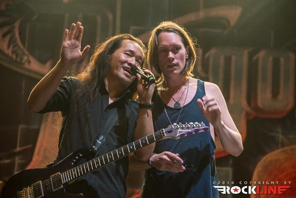 Zadnji so na oder stopili Britanec, Francoz, Italijan, Ukrajinec, Kitajec in Norvežan - ne, to ni začetek šale! Tisti, ki poznajo multietnične nintendo metalce Dragonforce so verjetno že opazili, da sem namesto še enega Britanca omenil Norvežana. Razlog tiči v tem, da je stalni pevec Marc Hudson zbolel, nadomestil pa ga je Per Fredrik Åsly »PelleK«. O njem naj povem le to, da snema priredbe japonskih anime komadov in je zelo popularen na portalu YouTube. Kaj še dodati, boljše zamenjave si za Dragonforce sploh ne moram predstavljati, še posebej po tem, ko je Per začel peti. Njegov glas in videz se še bolj skladajo s konceptom celotnega benda, žal pa je večino skrajšanega, pet skladb dolgega koncerta bil zasidran na robu odra in s tal prebiral besedila. Sicer logična poteza, saj je imel časa zgolj toliko, da je iz Norveške prispel do Tolmina, so pa za razgibalne vaje poskrbeli ostali člani benda, ki so odigrali res odličen koncert. Tisti, ki Dragonforce ne prenesejo, jim ne bi bili všeč tako ali tako, ne morejo pa jim zanikati tega, da so se v zadnjih nekaj letih spremenili v enega izmed najbolj točnih in uigranih bendov na sceni. Tisti, ki pa smo se želeli zabavati, smo kljub skrajšanemu koncertu prišli na svoj račun. (t: David)