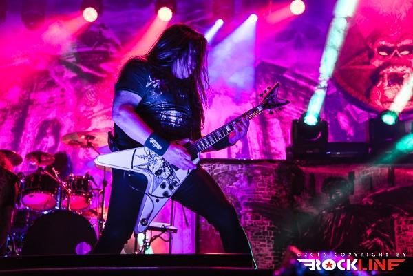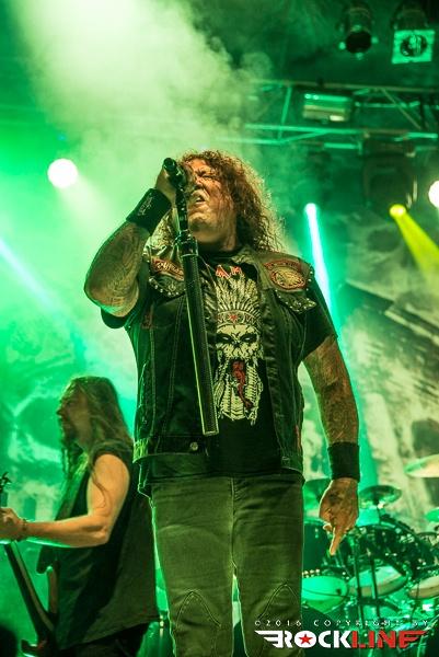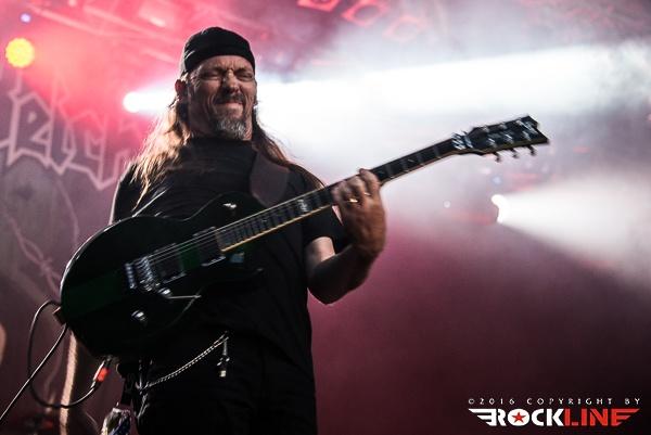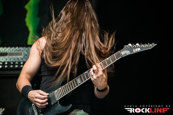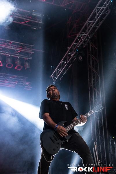 Ponedeljkovi nosilci glavnega odra pa so bili ameriški Testament. Skupina je že vsem zelo dobro znana, nazadnje so v Tolminu nastopili na zadnjem Metalcampu leta 2012, tokrat pa so z zelo podobnim izborom skladb zveneli mnogo boljše, predvsem zaradi tega, ker je bil vokal veliko bolj razločen v splošnem miksu. Koncert je bil izpeljan brez napak, Chuck je konstantno spodbujal občinstvo, bend pa je res blestel v svoji tehnični brezhibnosti. Dan prej je bilo možno opaziti že skoraj neprepoznavno suhega Genea Hoglana, ki se je mirno sprehajal po sotočju in se pogovarjal z oboževalci, kar samo dodatno priča o tem, kako so ti stari mački, kljub dolgoletni uspešni karieri, še vedno zelo prizemljeni in skromni. Testament so še vedno v izjemni formi in nestrpno lahko pričakujemo njihov nov album naslovljen »The Brotherhood Of The Snake«, ki bo izšel 28. oktobra letos. (t: David)