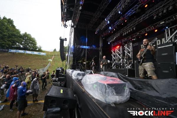 Sledila je brez dvoma najbolj pričakovana Slovenska zasedba dneva, če ne kar festivala. Škofjeloški thrash metalci Sarcasm so že dobro pozano slovensko metal ime. Kljub menjavam v zasedbi so ostali na nivoju. Kot zadnja sprememba se je v letošnjem letu pojavil pevec Grega Čadež (Rise), ki se v bandu še kali, ampak je kljub temu svojo vlogo dobro odigral. Konstantno odrsko energijo vseh članov je dopolnil prav on še z dobrim animiranjem konkretno polne publike pred odrom in jih spravil celo v moshpit. Zasedbe ne gre grajati, saj delujejo odlično usklajeno, presežek pa je v bobnarju Alešu Korošcu. Svoj dolgoletni obstoj na sceni so najavili z prihajajočim koncertom ob obletnici. V ta namen so se jim je na odru pridružili še nekdanji člani Aleša in Sandi na basu, ter Tomi na kitari. Sarcasm so pričakovani pustili odličen vtis in ne dvomimo v kvalitetno izpeljano obletnico. Vsaj priprava jim očitno več kot dobro gre od rok in ust. Vsaj sodeč po odzivu publike sta izstopali skladbi Crematory in Something to believe. Tako je bil to odličen uvod v prve zvezde večera na velikem odru Napalm Death. (t: Klemen)