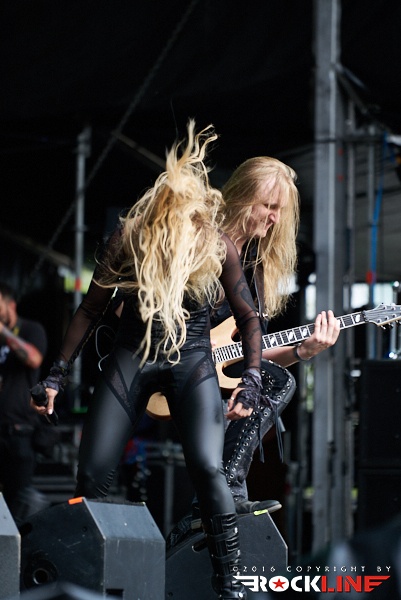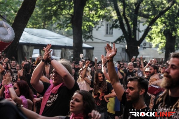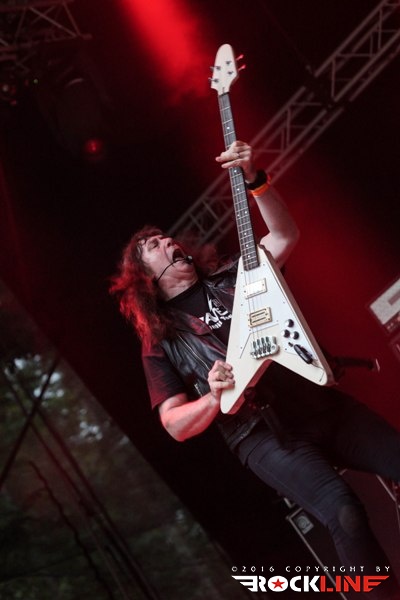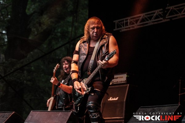 Tudi naslednje nastopajoče, NWOBHM veterane Raven, smo sprejeli z odprtimi rokami, saj prav vsakič pripravijo hudičevo energičen nastop »atlethic rocka«, kot mu pravijo sami. Jedro Raven že vse od ustanovitve davnega leta 1974 tvorita brata John in Mark Gallagher, ob njim pa od poznih osemdesetih še bobnar Joe Hasselvander, ki pa še vedno okreva po srčnem napadu, zato je na njegovo mesto (začasno) stopil Dave Chedrick (Kill Ritual). Tudi to pa norih bratov Gallagher ni ustavilo, saj ju je bil znova oder poln od trenutka, ko sta stopila nanj. Čeprav sta na trebušnem delu precej baročna ju to ni ustavilo, da ne bi ves čas šprintala sem in tja, skakala in telovadila z vratovi. V slabi uri se njihov ultra hiter in nespoliran heavy metal ni ustavil niti za sekundo, publiko pa so osvojili s svojo simpatičnostjo in hitičem On And On.
