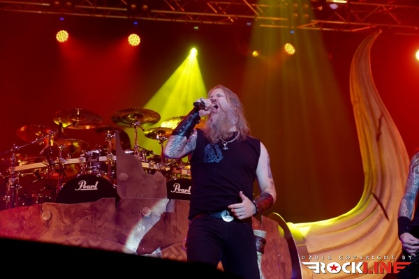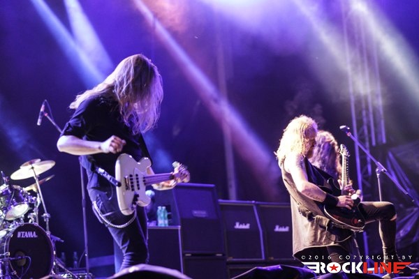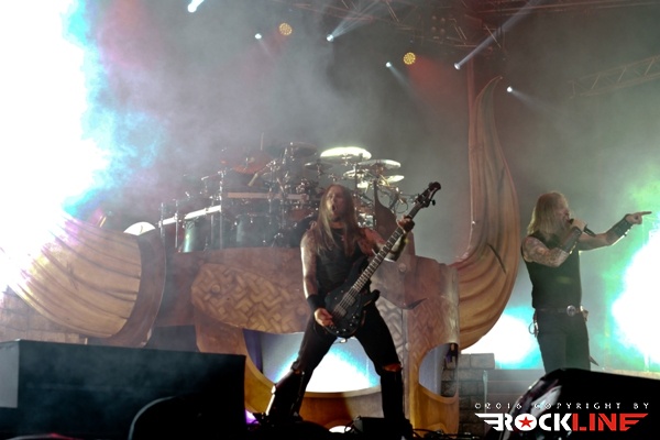 Celoten živelj, ki je obiskal v letošnjem letu festival, je čakal drugega dne na enega samega izvajalca. Na prizorišču sotočja že davno ponarodelega. To so Švedi Amon Amarth. Dostopna pot do prizorišča glavnega odra je bila večkrat dobesedno zamašena, saj je narod evforično bredel na koncert skupine. Verjetno ni odveč okvirno dodati, da je pravzaprav cel festival gledal nastop skupine. Amon Amarth so skozi leta prerasli v gigantsko franšizo, ki polni prizorišča po celem svetu. Tako je skozi leta rasla tudi sama scenografija ter bogastvo odrskih kulis. In bend je ob še vedno aktualnem albumu »Jomsviking« izdanem v lanskem letu, nenehno in vseskozi na odrih. Vsekakor lahko tudi tokratni obisk skupine na festivalu označimo z eno samo besedo. Spektakularno. Celotna režija. Z nenehno menjavo kulis, izjemnimi pirotehničnimi vložki, vmesnim podžiganjem publike s strani vokalnega hrusta Johana Hegga, ki je v velikem finalu herojsko ukrotil orjaškega, grdega in zlobnega zmaja ter seveda ob sami izvedbi repertoarja. Strogo profesionalno in do potankosti preučeno. Od prve do zadnje sekunde. Pri vsej stvari je motila le ena reč. Koncert je bil pretih. Pač logistika razpoložljivega ozvočenja tega in prvega dne festivala, ki sta veljala za »nevihtna«, več ni dopuščala. A to ni skalilo izjemne energije in interakcije publike ter benda, ki ni pojenjala skozi koncertno predstavo. Masivna predstavitev novega albuma in nadobveznih klasik železnega repertoarja, so prinesle zasedbi še en nov zmagoviti koncertni obisk tolminskega sotočja, za katerega je jasno, da ni bil zadnji. Amon Amarth so torej prišli, videli in (znova) zmagali.