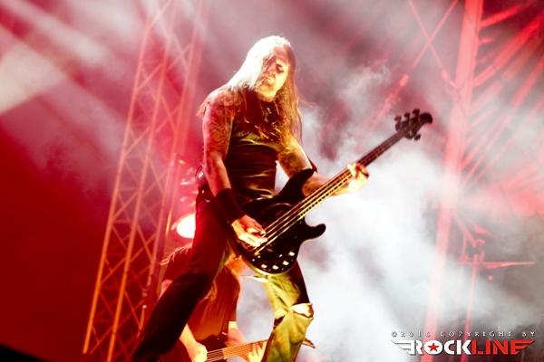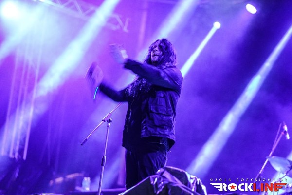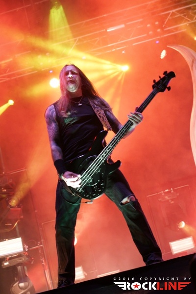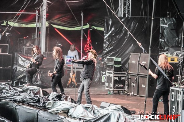 Ko bi morali stopiti na glavni oder Krisiun, se je huronsko ulilo, močan dež pa ni pojenjal vse do sedme ure, celo malo več. Ne glede na to, so še sredi deževja na glavni oder stopili legendarni ameriški metalci iz Seattla Sanctuary, ki jim poveljuje na vokalu znameniti in edinstveni lik Warrela Danea. Njihov nastop je bil razdeljen na dve polovici. Deževno in suho in ko se je s severozahoda prikazalo okno jasnine, je Warell spretno pribil: »Oh, a glimpse of light!« Nastop je bil logično nekoliko skrajšan bend pa je nanizal vsega sedem skladb, odprl predstavo z Arise and Puriy pri čemer ni pozabil vriniti v repertoar obvezno Frozen, zvrstile so se še Let the Serpent Follow Me, Season of Destruction, Die for My Sins, Question Existence Fading koncert pa je sklenil z Taste Revenge. Kultni riffi, kultni obrazi, kulten bend. Škoda le da ga je vreme pobiksalo in Sanctuary tako niso nastopili v optimalnih pogojih. Warrell ostaja izreden poveljnik, karizmatičen, v odrskih debatah s publiko pronicljiv in nenehno zanimiv sogovornik. Vseeno mož ne poseduje več tiste vokalne forme in moči, kot nekoč, ko so pod njegovimi vriski pokali zidovi, zato se je večino časa prilagajal tako, da je le občasno izdatneje razkazal svojo vokalno skrhanost, ko je segal po vokalni višavjih (občasni screami), sicer pa se je raje zadrževal v srednjih legah. Užitek je gledati in poslušati soliranje Lennyja Rutledgea, bend kot celota, ostaja magnetičen, pa čeprav tega magnetizma ni uspel tako intenzivno razviti, kot mu je to uspelo na ogrevalnem dnevu letošnjega Bang Your Head festivala v Nemčiji. Upajmo da nam uspe Sanctuary srečati kmalu znova. V optimalnih koncertnih razmerah. Sicer pa pohvala zasedbi, ki je navkljub vremenskim peripetijam pogumno stopila na oder in oddelala, kar je v teh težkih razmerah, pač lahko.