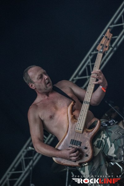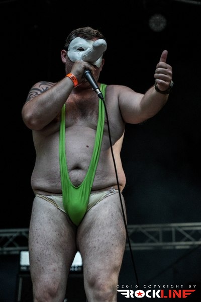 Na drugem odru je prišla na vrsto še zadnja izmed trojice čeških goregrind bandov letošnjega festivala, Spasm, kar je zopet pomenilo avditorij poln toaletnih potrebščin in pujskasto kruljačino neokusno oblečenega vokalista Radima (kar poglejte si to lepoto na spodnjih fotografijah) na začetku zakritega z masko naravnost iz Pasolinijevih 120 dni Sodome. Češkega grinda so imela moja ušesa za letos več kot preveč, zato sem po novo dozo heavy metala odšel pred glavni oder, kamor je švedski trio Grand Magus skušal prinesti nekaj severnjaškega, vikinškega hladu. Neuspešno sicer, a zgolj zato, ker si je sonce v petek res dalo duška. Grand Magus je pod odrom pričakal kar številčna publika, ki je vneto sodelovala v epskih, himničnih napevih komadov kot so On Hooves of Gold, Steel Versus Steel, Like the Oar Strikes the Water in še posebej Hammer of the North, čigar refren je množica prepevala še nekaj časa potem, ko je trojica zapustila oder.