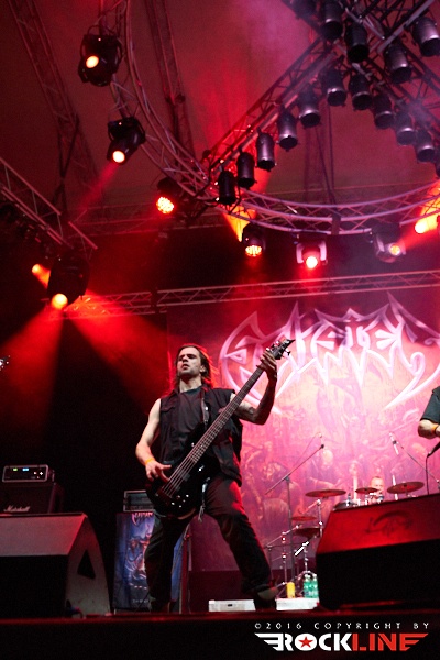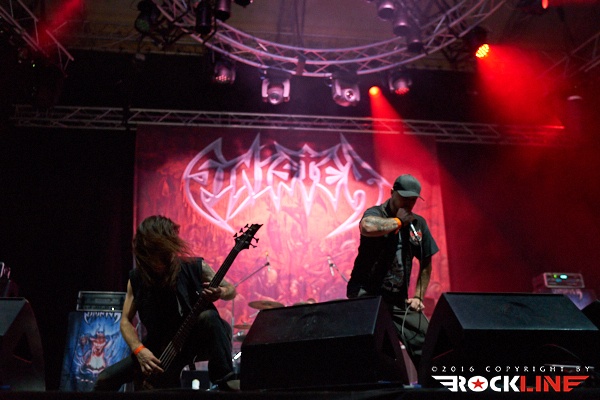 Po pol dneva (zelo kvalitetnega!) heavy metala, se je vendarle prileglo tudi nekaj bolj brutalnega, kar je servirala nizozemska death metal institucija Sinister. Nizozemci so leto izdali vrhunski izdelek Syncretism, ki vsekakor spada med boljše albume skupine in zanimivo, da nismo benda pri nas videli že lep čas, saj vokalist Aad Kloosterwaard živi v Sloveniji in je poročen z basistko Alešo (ex-Root 'a Balluta, ex-Sarcasm, ex-Supreme Pain, krajši čas pa je v živo basirala tudi pri Sinister), na kar je opozoril z lepim nagovorom v katerem je opozoril, da ima ta festival v njegovem srcu posebno mesto, saj je prav na njem spoznal svojo bodočo ženo. Dovolj sentimentalnosti, Sinister so v dobri uri, pod odrom lepo nabrani publiki, brez usmiljenja mleli kosti z vrhunsko izvedbo, pri kateri je prednjačilo predvsem potresno in natančno bobnanje Toepa Duina in Aadov brutalni vokal potegnjen iz samih globočin pekla. Izjemen nastop so Sinister nadgradili s čudovitim izborom komadov, od klasike Sadistic Intent, pa do novih rušilcev Neurophobic in Convulsion of Christ, ki bosta klasiki še postala. Brutal!