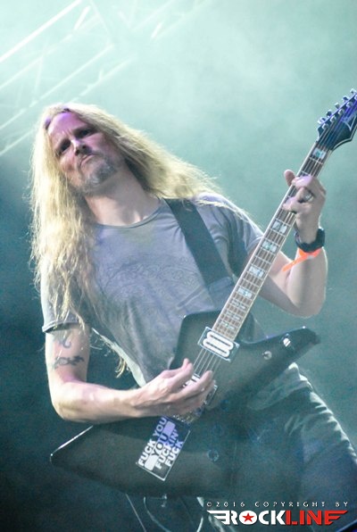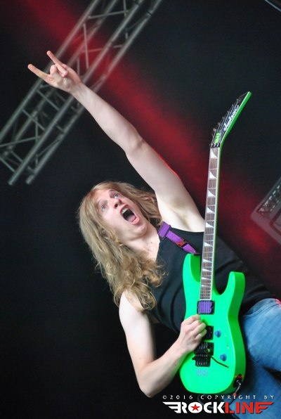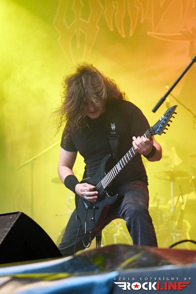 Grave Digger, dolgoživi Bochumski predstavniki stare šole tevtonskega heavy metala, neuničljivi grobokopaški drvarji, ki jih vodi nezamenljivi pečatni krulež (danes v postavi) edinega ustanovnega in originalnega člana ter šefa skupine Chrisa Boltendahla, so prirogovilili na drugi oder festivala z novo ploščo v žepu imenovano »Healed By Metal«. Z naslovno skladbo te plošče je kleni kvartet, tudi odprl koncert. Pravzaprav so Grave Digger sestavili set listo po okusu gorečih fanov saj je glavnino le te zastopala izvedba klasik iz t.i trilogije na čelu z Excalibur, The Roundtable (obe z albumea »Excalibur«, 1999), nadalje Tunes of War (1996) klasike In the Dark Of the Sun, obvezno Rebellion (The Clans Are Marching), presenečenje in balado Mary the Queen of Scots, pa »Knights of the Cross« (1998) klasiki Lionheart ter Knights of the Cross. Le na repu repertoarja so Grave Digger zaokrožili enourno veseljačenje s pričakovano Heavy Metal Breakdown. Nič iz albuma »The Reaper« (1993) ter »Heart of Darkness« (1995). Zgodba oguljenih set list skupine se torej ponavlja. Škoda. Koncert je bil oddelan na nivoju, zlasti kar se vokalne karizme Chrisa Boltendahla tiče, ki mu je kruljačenje tokrat dostojno služilo tudi v zahtevnejših, višjih legah (refren skladbe Knight s of th Cross). Edini, ki je nekoliko razočaral, je bil kitarist Axel Ritt, zavoljo nekaterih malodane nedopustnih šlamparij pri igranju kitare, kot je to veljalo za povsem neposrečeno solažo v skladbi Knights of the Cross ter silno šlampasto odigrani uvod v skladbo Lionheart, prav tako pa si je privoščil še nekaj netočnosti tudi med preostankom koncertnega materiala. Ritem naveza Arnold /Becker je tudi tokrat delovala v polnem galopu, Stefan je nasploh znova upozoril, da ostaja eden glavnih vldarjev dvojne bas boben stopalke, na sodobni evropski sceni power in heavy metala. Ni kaj. Suma sumarum. Lepo novo druženje z legendami.
