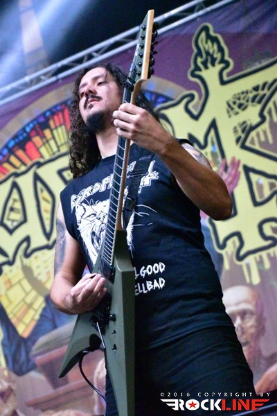 Ena najbolj mamljivih ponudb Borško Bursać odra je bila tega dne, vsaj za death metalce, ameriška zasedba Gruesome, ki na čudovit način slavi zapuščino botra death metala (čeprav tega izraza sam nikoli ni prav maral) Chucka Schuldinerja in legendarnih Death. Death pankrt se je rodil kot ideja kitarista in vokalista Matta Harveya (Exhumed) in bobnarja Gusa Riosa (ex-Malevolent Creation), ki sta na turneji z Death To All dobila že(l)jo po igranju zgodnjega materiala očakov death metala, torej od prvenca Scream Bloody Gore pa tam nekje do Spiritual Healing. Ker to v sklopu DTA turnej ni bilo možno v tolikšni meri sta Harvey in Rios ustanovila Gruesome, katerih namen je popolna emulacija Death po kronološkem vrstnem redu. Prvenec Savage Land je tako oponašal Scream Bloody Gore, EP-ja Dimensions of Horror in Fragments of Psyche Leprosy, letošnji Twisted Prayers pa Spiritual Healing. Gruesome popolnoma odkrito priznavajo, da je njihov namen kar se da spoštljivo kopiranje Death in s tem so brez dvoma morda celo najbolj iskren poklon pokojnemu Schuldinerju sploh. Gruesome so pod vodstvom razpoloženega Harveya in njegovega zverinskega vokala ob odličnem zvoku sesuli z rušilci kot so Dimensions of Horror, Forces of Death, Legal Legacy, Savage Land in publiko takoj spravili v gibanje v brutalnem mosh pitu. Ritem sekcija naveze Robin Marzen/Gus Rios je ves čas brez usmiljenja tresla drobovje, kitari Harveya in Daniela Gonzaleza (Possessed) pa sta grizljali, rezali in trgali kot lačni kanibali v kultni packariji Cannibal Holocaust (eni od grozljivk, ki je bila navdih za Savage Land). Eden najboljših, če ne celo najboljši death metal koncert Metaldays 2018!