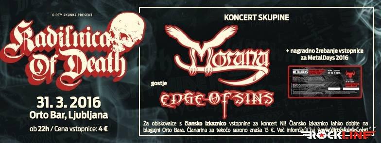 Zadnji marčevski dan se je v Orto baru odvil koncert domačih melodičnih death metalcev Morana in heavy metalcev Edge of Sins. Večer je potekal v sklopu slovenskih metal večerov Kadilnice of Death, ki je do sedaj verjetno že vsem zelo dobro znana.