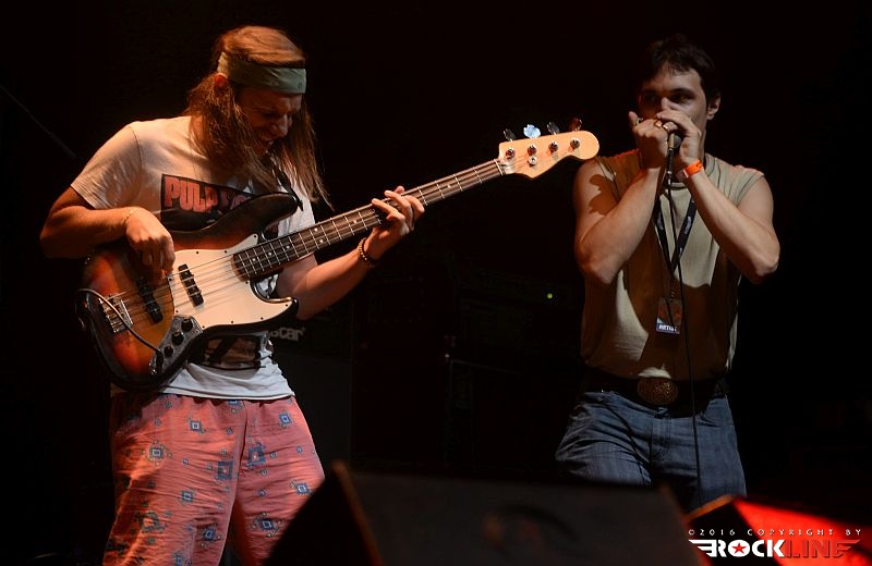 Na odru so petnajst minut do sedme pozno popoldan udarili slovenski hardrockerji Stray Train. Bend, ki je v relativno kratkem času delovanja, odmeril nekaj izrednih razkorakov na poti proti svoji obči prepoznavnosti, zavedajoč se dejstva, da je slovenski trg za apetite in vizijo skupine daleč, daleč preozek. Stray Train so prodrli na mednarodno prizorišče. Odskočno desko za to jim je dal izvrstni in pretkano dovršeni studijski prvenec »Just ‘cause you got the monkey off your back doesn’t mean the circus has left town«, ki so ga izdali v lanskem letu, kar jih je poneslo na, če se ne motim, kar 40. skupnih koncertov s skupinama Blues Pills in Kadavar. Številka 40 niti ne deluje »strašljivo« v kolikor ji ne prišteješ dejstva, da je bilo tih štirideset koncertov zaigranih v pičlih 43. dnevih. Res vsega spoštovanja vredno.