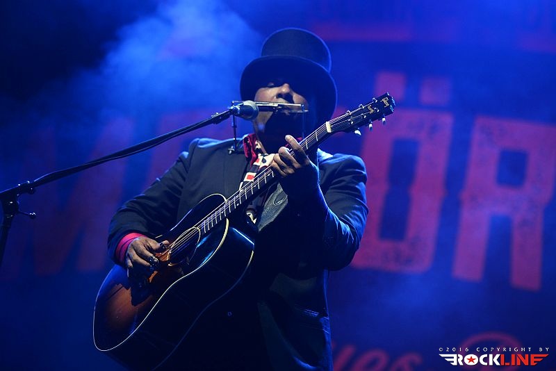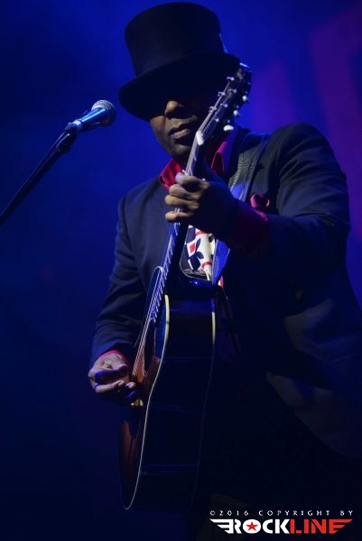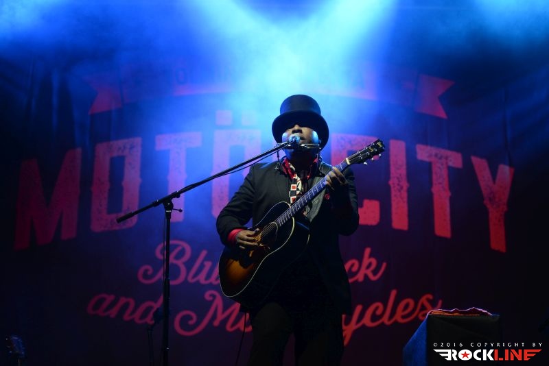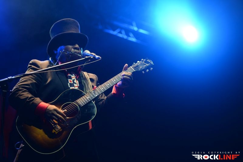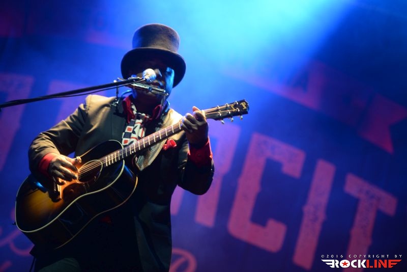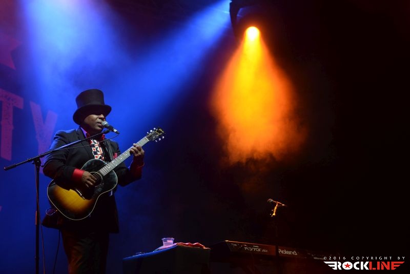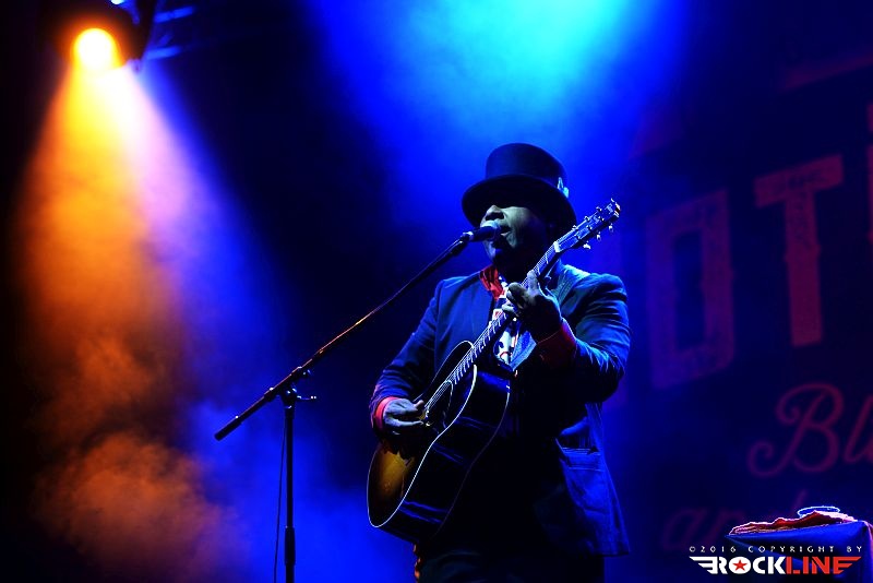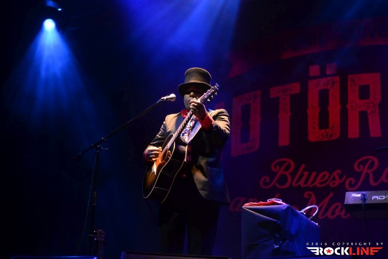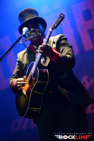 Chris Thomas King je veljal za glavnega nosilca drugega dne festivala. Temnopolti multi-instrumentalist in silno cenjeni glasbenik mednarodnega prizorišča, je prispel v Tolmin brez svoje spremljevalne ekipe. Nastopil je v režiji »en človek«. V prvem delu je pretežno izvajal komade, kjer sta mu, ob vokalni interpretaciji, delali družbo akustična kitara in orglice. V vsem česar se je dotaknil je bilo moč izluščiti prefinjeno zmes delta bluesa, country folk glasbe, soula prav tako pa ni bilo težko izluščiti, da bi se h Kingovim napevom izvrstno vključil tudi ženski gospelovski zbor. Chris Thomas King je nekje na sredini predstave presedel za klavir in razkazal tudi vse svoje mojstrstvo obvladovanja tega instrumenta, pri čemer je seveda ohranjal vso kompaktno sledljivost in rdečo nit izvedenih točk. Med koncertom se je publika nekolik razkropila, mož je to zaznal in se potrudil predramiti maloštevilne opazovalce, da se aktivneje vključijo v njegov nastop. Ob nagovorih ni pozabil korenito ošvrkniti blaznost dejanj novega ameriškega predsednika, kar niti ne čudi. Pustimo politiko raje pri miru. Mož, ki bo v nekaj dneh povil svoj že 27. studijski glasbeni projekt imenovan »Hotel Voodoo«, slovi kot vrste očeta, ki je združil blues s hip-hopom (rapom), vendar na tem samostojnem koncertu, brez spremljevalne ekipe, to niti ni prihajalo do izraza. Ostal pa je v spominu unikatni Kingov »Oooh-Ooooh« napev s katerim je večkrat polnil prehode posameznih točk svojega nastopa. Zaigral je tudi Hard Tme Killing Floor Blues, ki jo je nekoč davno tega izvajal Skip James ter I Am A Man of Constant Sorrow (avtor Dick Brunett). To sta obe točki povezani s filmom »O Brother, Where Art Dou?« v katerem nastopa v eni izmed igralskih vlog tudi Chris Thomas King. Tako med drugim ni manjkala niti. Čutno, močne emocije, vokalno podoživeto in edinstveno. Čeprav je King priredil zares lepo predstavo, se je izkazalo, da je v solo režiji le pretrd oreh za obiskovalce. Tako jih je bilo pred odrom manj, kot bi si izvajalec njegovega kova zaslužil. Upajmo, da se mož vrne. Naslednjič v spremstvu svoje zasedbe.