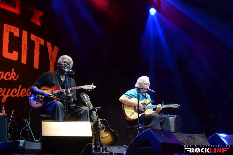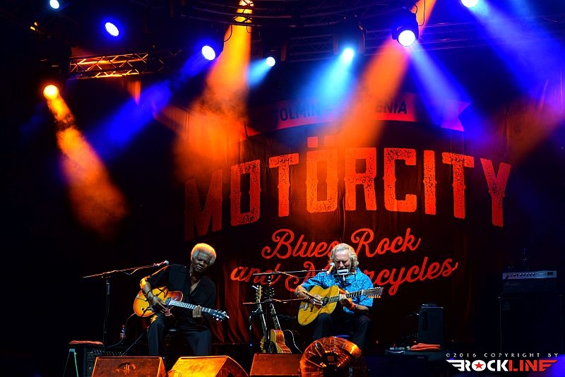 Na oder sta se povzpela Terry Evans in Hans Theessink. Dva izjemna glasbenika, ki sta že pred leti našla skupno kemijo in tako združila moči v akustični duet. V Tolmin sta prispela iz Celovca, kjer sta nastopala en dan prej. Njuna esenca je narekovala izkustvo, kot da vsak izmed njiju prinaša esencialne kosce v popolno glasbeno sestavljanko. Kar eden nima, ima pač drugi in obratno. Torej. Vsega dva glasbenika, z akustičnima kitarama, pomožnimi naprstniki in orglicami ter? Vokaloma. Izjemnima vokaloma, ki znata še kako prijetno božati in izvabljati emocije tudi iz najbolj črnih kotičkov naših duš. Lahko rečemo, da je šlo za popolnoma poseben koncert celotnega festivala. Kako lahko minimalizem ob vsej intimnosti ukroti prav vsak megalomanski kičeraj in lišp za katerim se "rada skriva" glasbena produkcija. Bolj globje od tega ne gre. Ura in petnajst minut popolne dušebrižne naslade, dveh izjemnih bluesovskih pastorjev. Terry Evans je pravi vokalni kameleon, kadarkoli je odprl usta je njegova sofisticiranost in neverjetna pretanjenost sprožala kurjo polt, njegovi vokalni manevri, pa so se lesketali v mnogoterih barvnih niansah. Če iščeš primarno kaj je to pravi in prvinski "temnopolti" vokal, potem se oglasi pri Evansu. Theessink je na drugi strani polno imponiral s svojim nizkim baritonom. Neverjetni vokalni kontrast obeh glasbenikov je držal maloštevilno publiko na vzdražnem pragu emocij in strasti. Nenehno v polni »napetosti« torej. Možakarja sta urezala sledeče skladbe: How Come People Act Like That, Don't Let The Green Grass Fool You (Wilson Pickett), Mother Earth (Memphis Slim), Talk To Your Daughter (J. B. Lenoir), Demons, izvrstno ragtime točko imenovano Glory Of Love. Poseben poudarek sta glasbenika namenila svojemu skupnemu albumu »Delta Time« (na njem je sodeloval tudi famozni Ry Cooder) in sicer s skladbami Gotta Keep Movin', Shelter From The Storm, I Need Money in Delta Time. Duet je pripeljal koncert k svojemu koncu tako, da se je sprva lotil šegave Theessinkove Minnibelle, temu je sledila razvratna You Can't Judge A Book by The Cover (orig. Bo Diddley) ter prvi Chuck Berryjev hit Maybeline. Ob srčnih ovacijah maloštevilne publike, sta Evans in Theessink zaigrala še Tears Are Rollin' in se dokončno poslovila. Nepozabno.