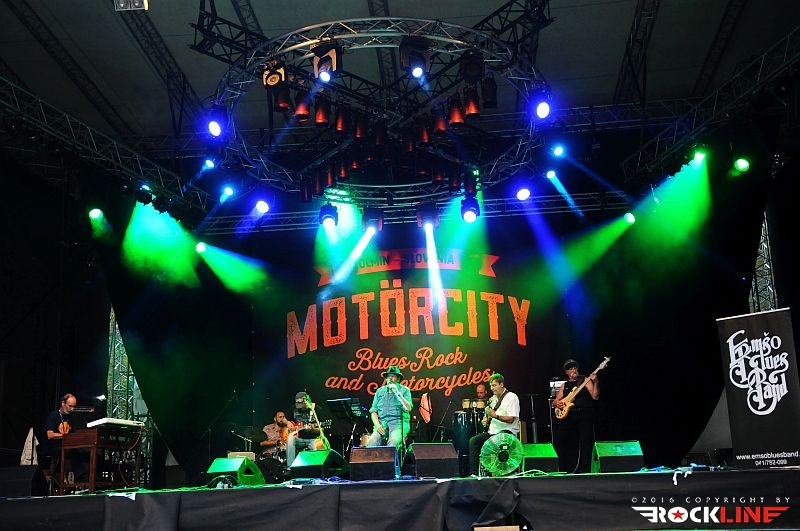 Sedaj pa gremo kar k prvemu dnevu. Prva skupina prvega dne torej. Četrtek pozno popoldan. Pred odrom komaj trideset ljudi. No vseskupaj jih je bilo razpršenih na platoju famoznega gozdiča pred sotočjem Tolminke in Soče, kjer je stal oder poimenovan »B.B. King«, kakih sto, številak pa se do sklepnega dejanja prvega dne festivala, ni mnogo spremenila. Edini oder, ki je zastopal prvi Motörcity festival v zgodovini, sicer velja na Metaldays festivalu za second stage. No na njem so pričeli ob napovedani uri, to je petnajst minut pred sedmo zvečer s svojim programom veterani slovenskega blues rocka EMŠO Blues Band. Modreci, izkušeni in seveda izvrstni oponašalci The Allman Brothers Band. Resnično zvočno in izvedbeno doterani v nulo. Skupino sem prvič videl v živo, kar je prava mala sramota, a tako so se odvijali dnevi in leta in nikakor se nisem uspel srečati z njimi že prej v živo. Bend nastopa v postavi Emil 'Jimi' Pock (vokal, akustična kitara), Edo Sušnik (kitara), Janc Galič (kitara), Slavc Žust (bas kitara), Andrej Konjajev (orgle, klaviature), Marko Avanzo (bobni), David Kobe (tolkala), ob tej priložnosti pa jim je na nastopu v Tolminu pomagal vsestranski in izpiljeni bobnarski mojster Sergej Ranđelović »RunJoe«. V slogu Allmanov. Dva bobnarja na odru torej!